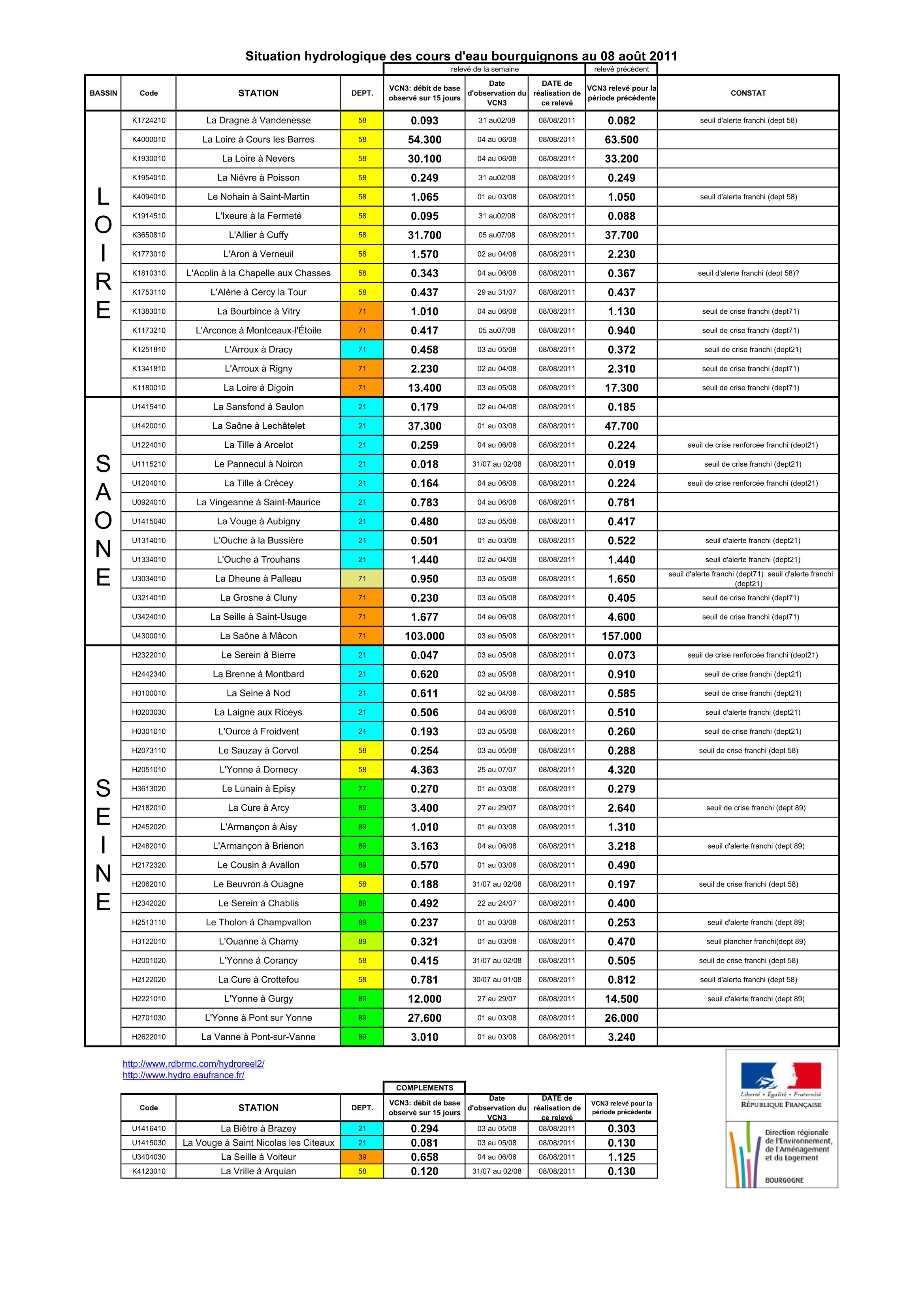 Bulletin Sécheresse BFC/Ouest 08-08-2011