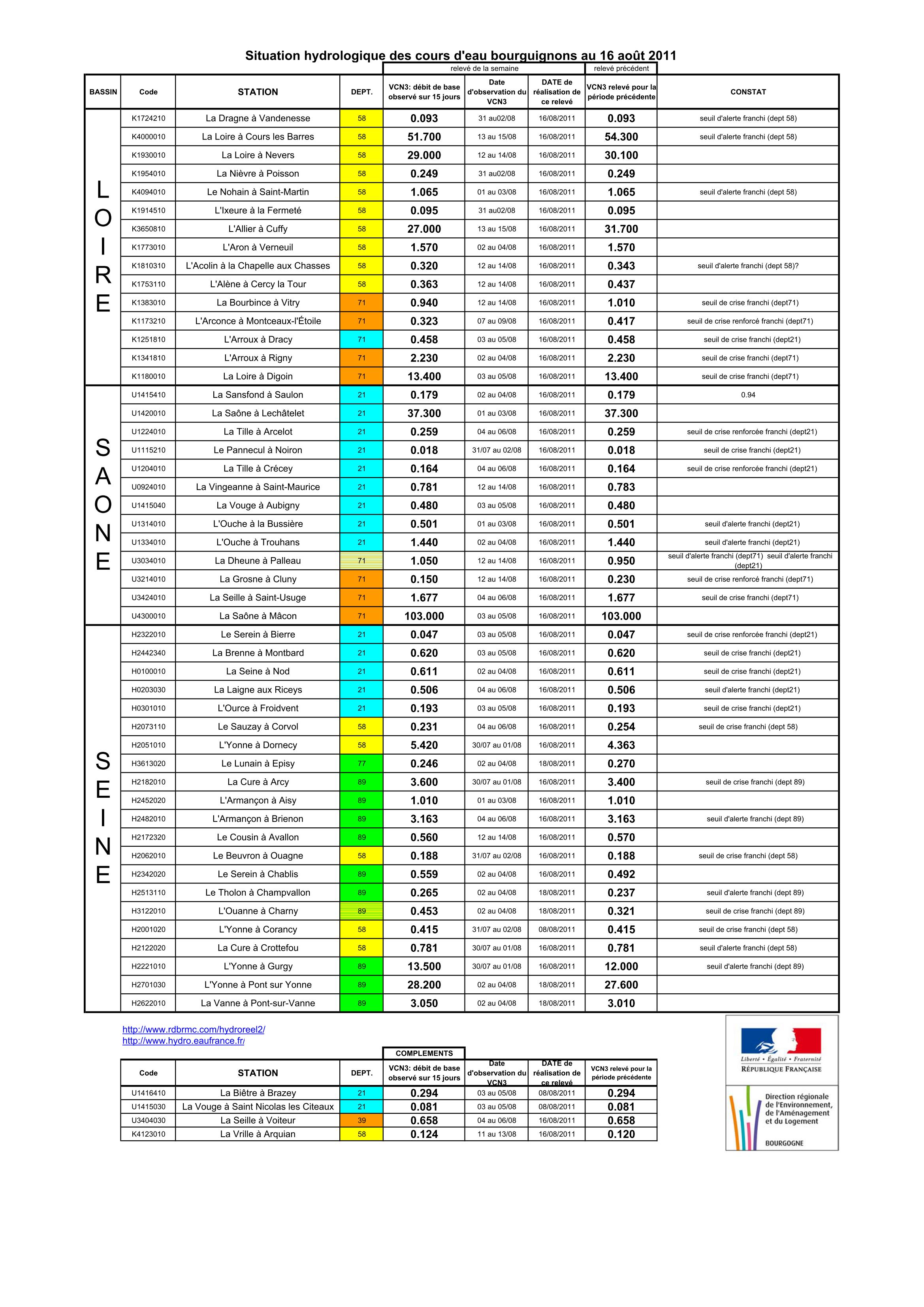 Bulletin Sécheresse BFC/Ouest 16-08-2011