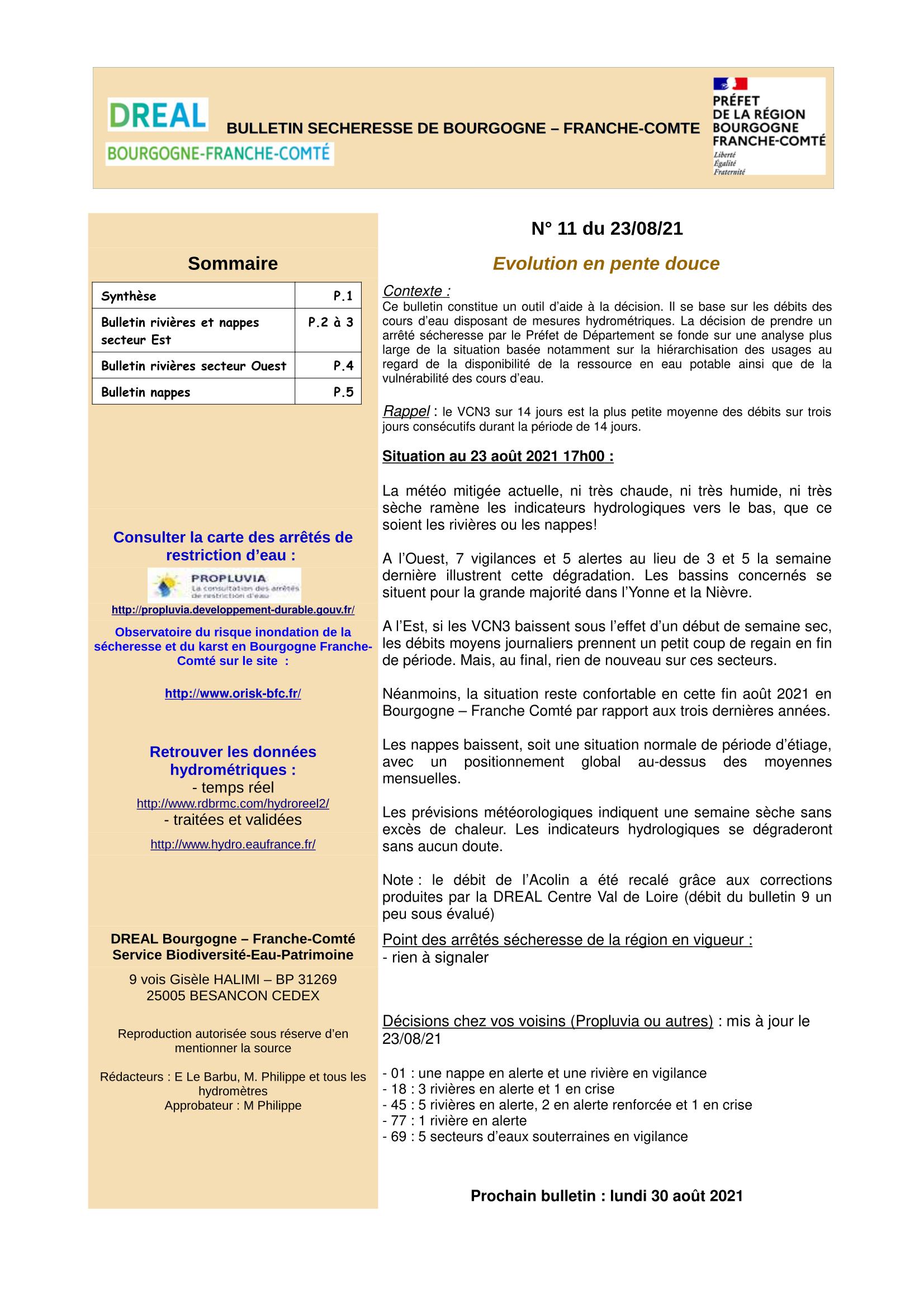 Bulletin Sécheresse BFC n°11 du 23-08-2021