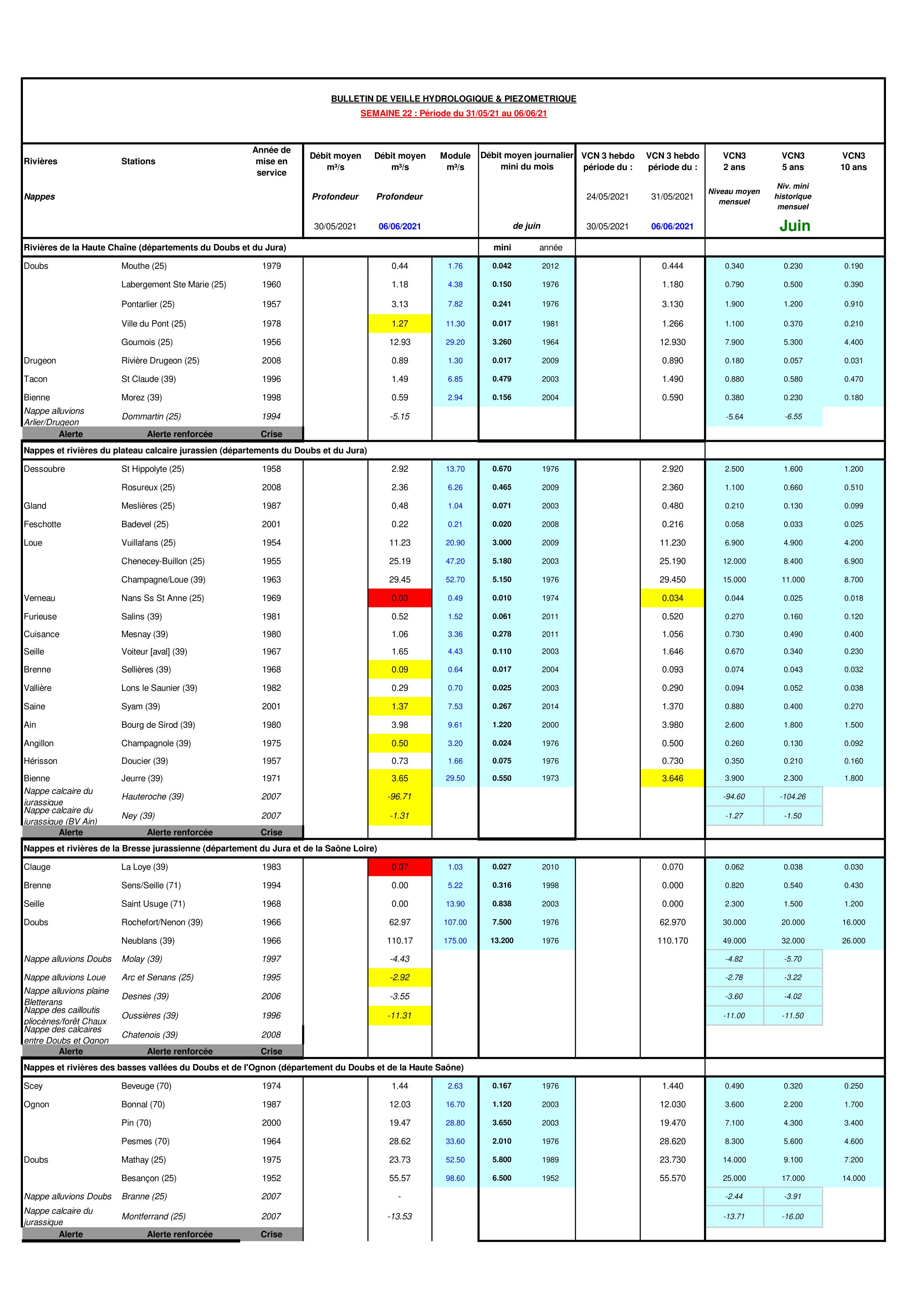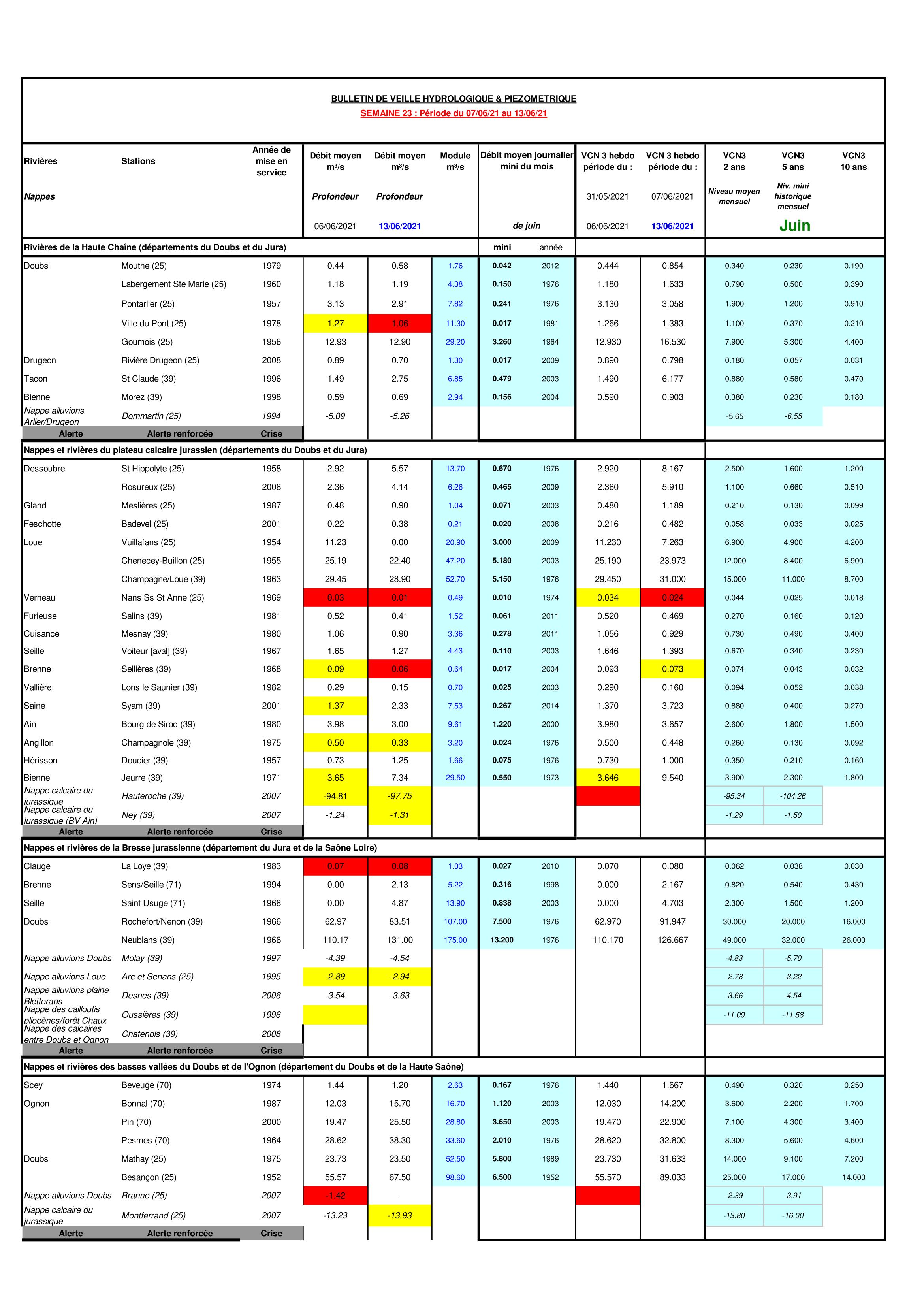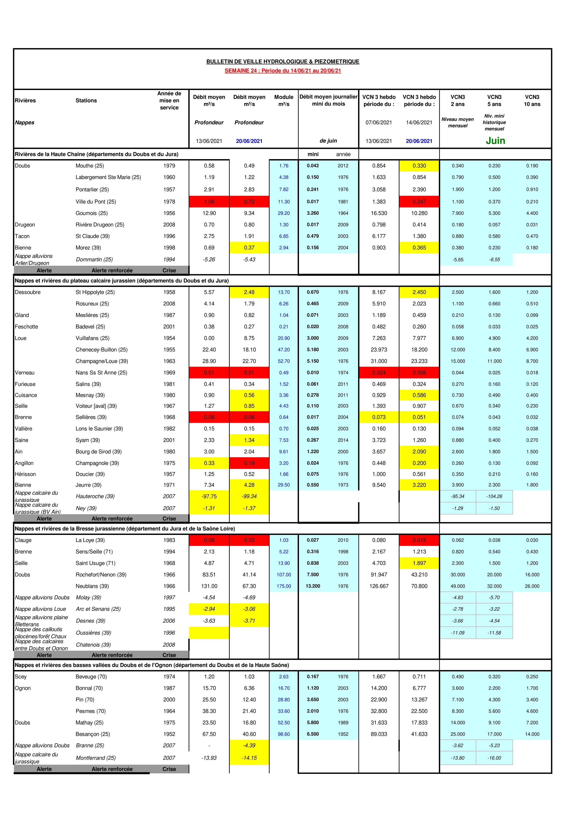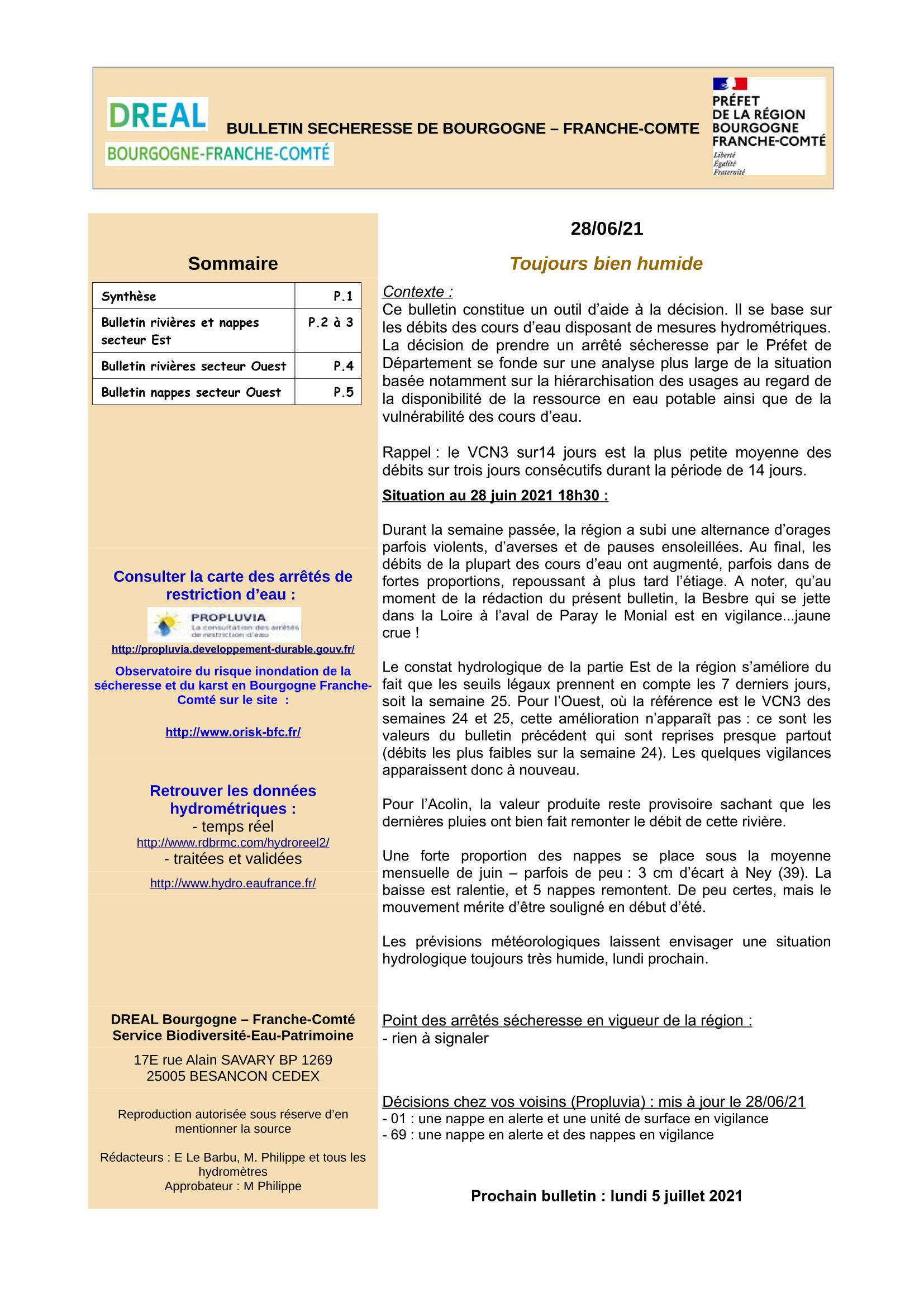 Bulletin Sécheresse BFC du 28-06-2021