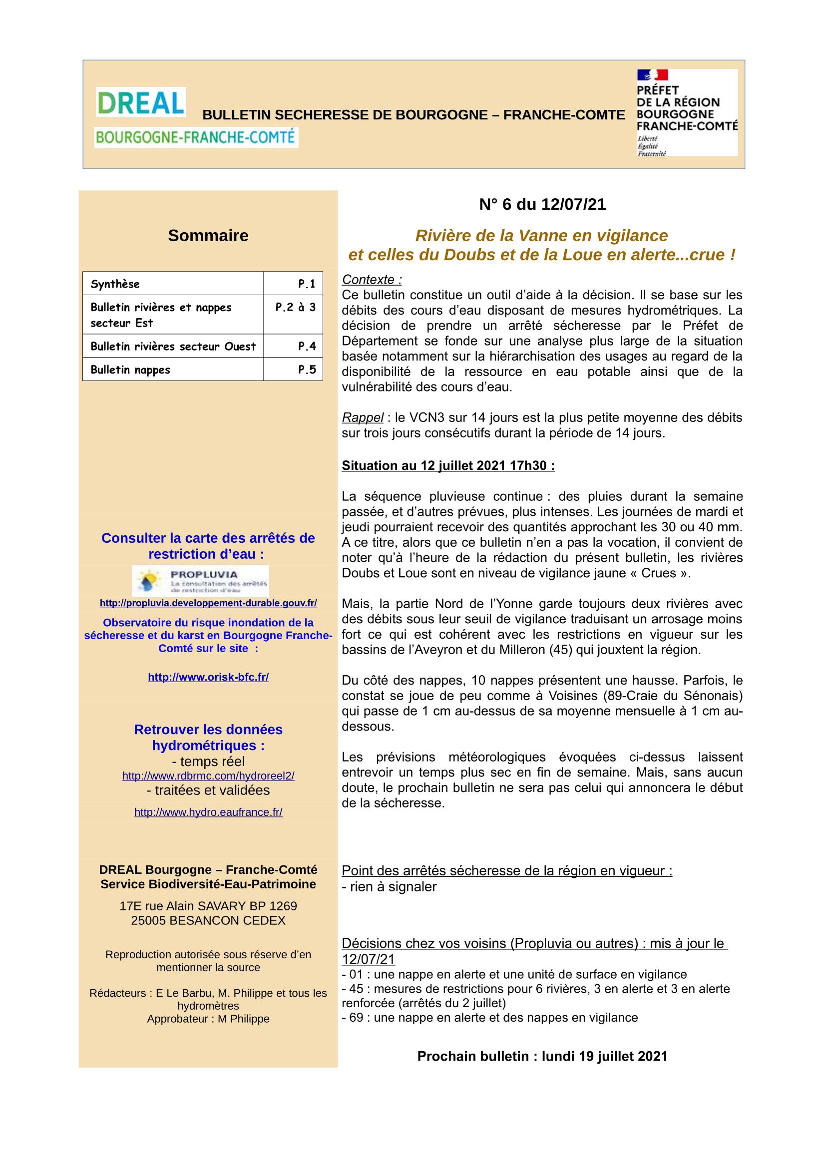 Bulletin Sécheresse BFC n°6 du 12-07-2021