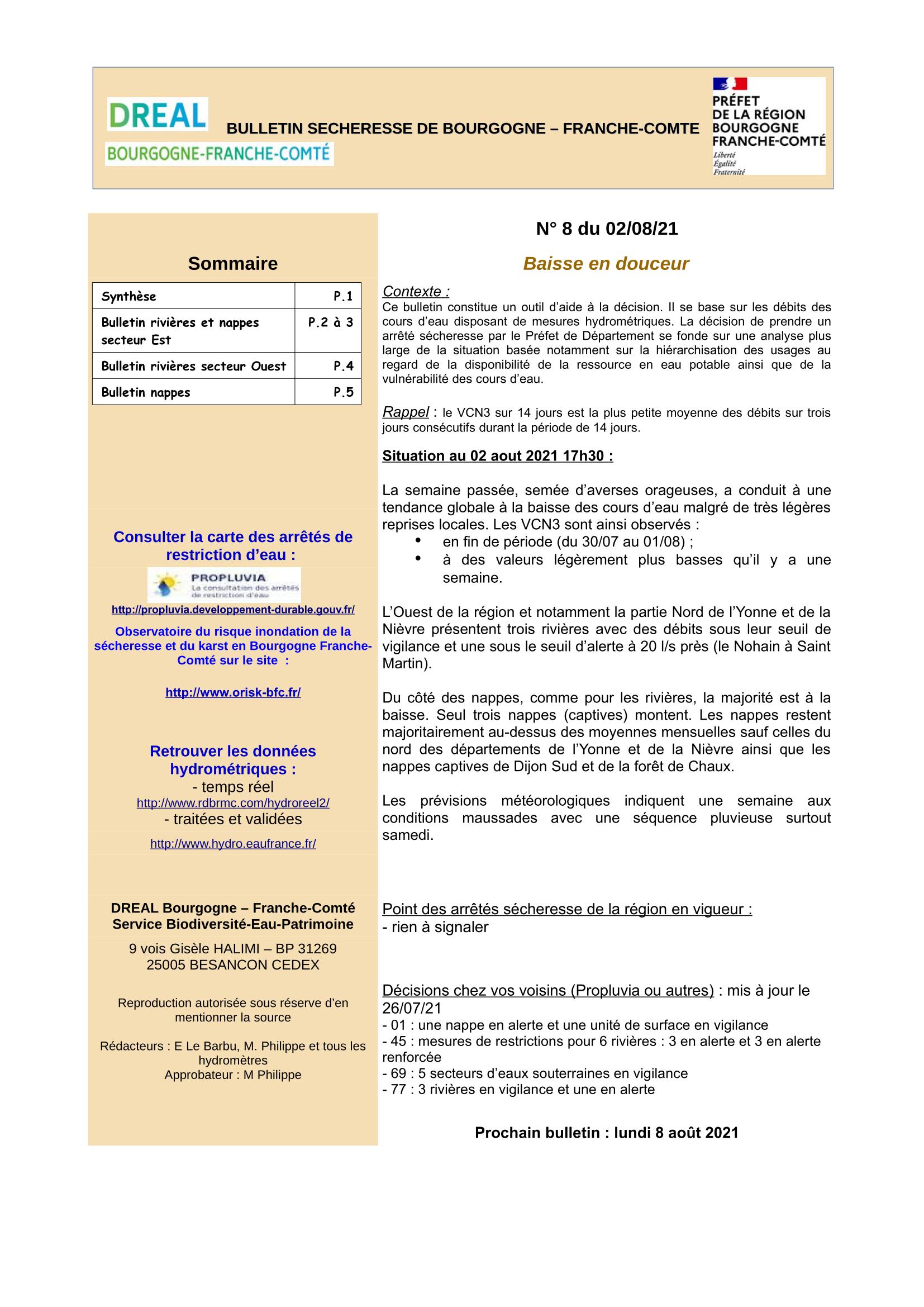 Bulletin Sécheresse BFC n°8 du 02-08-2021