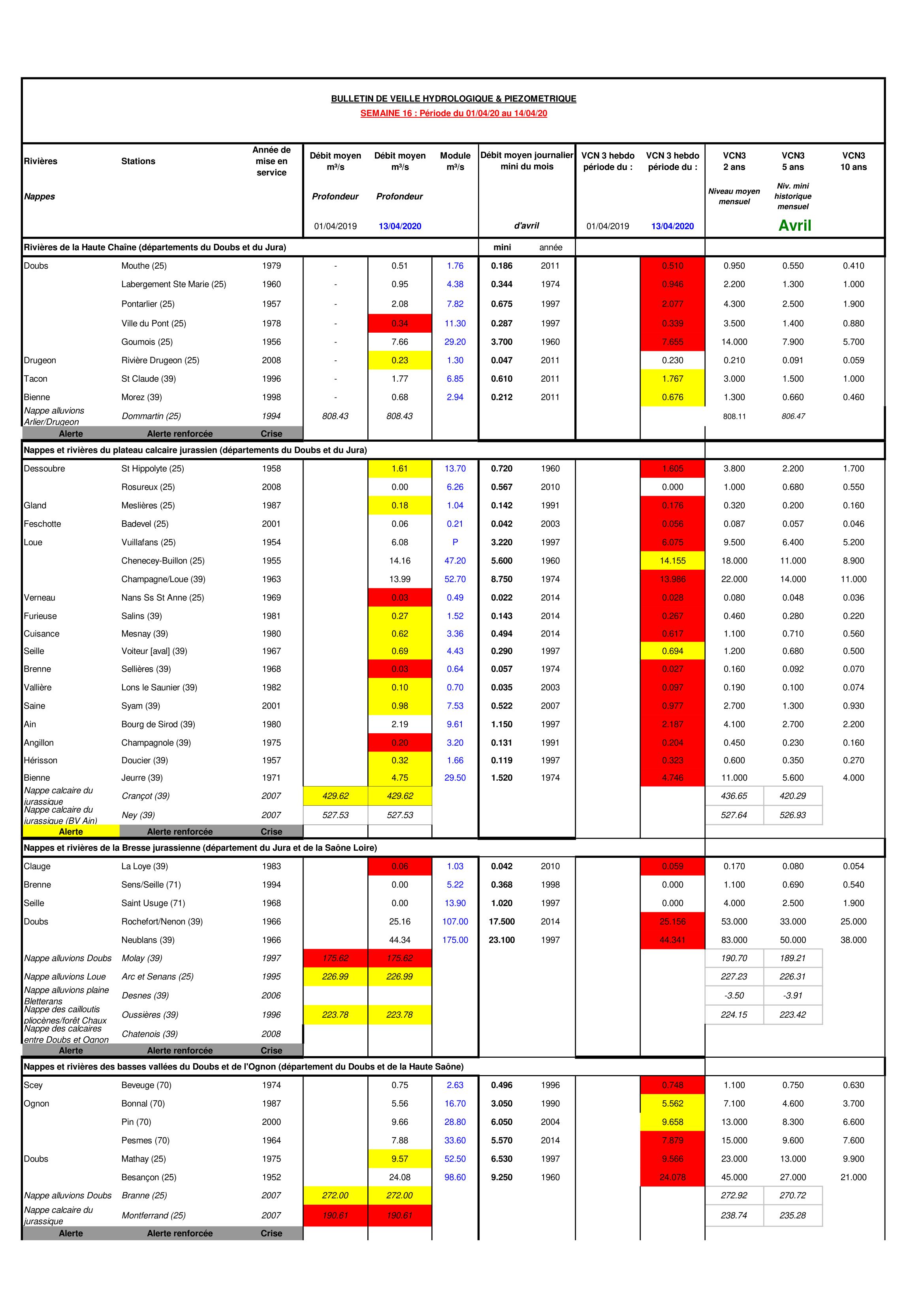 Bulletin Sécheresse BFC/Est semaine 16 - 2020