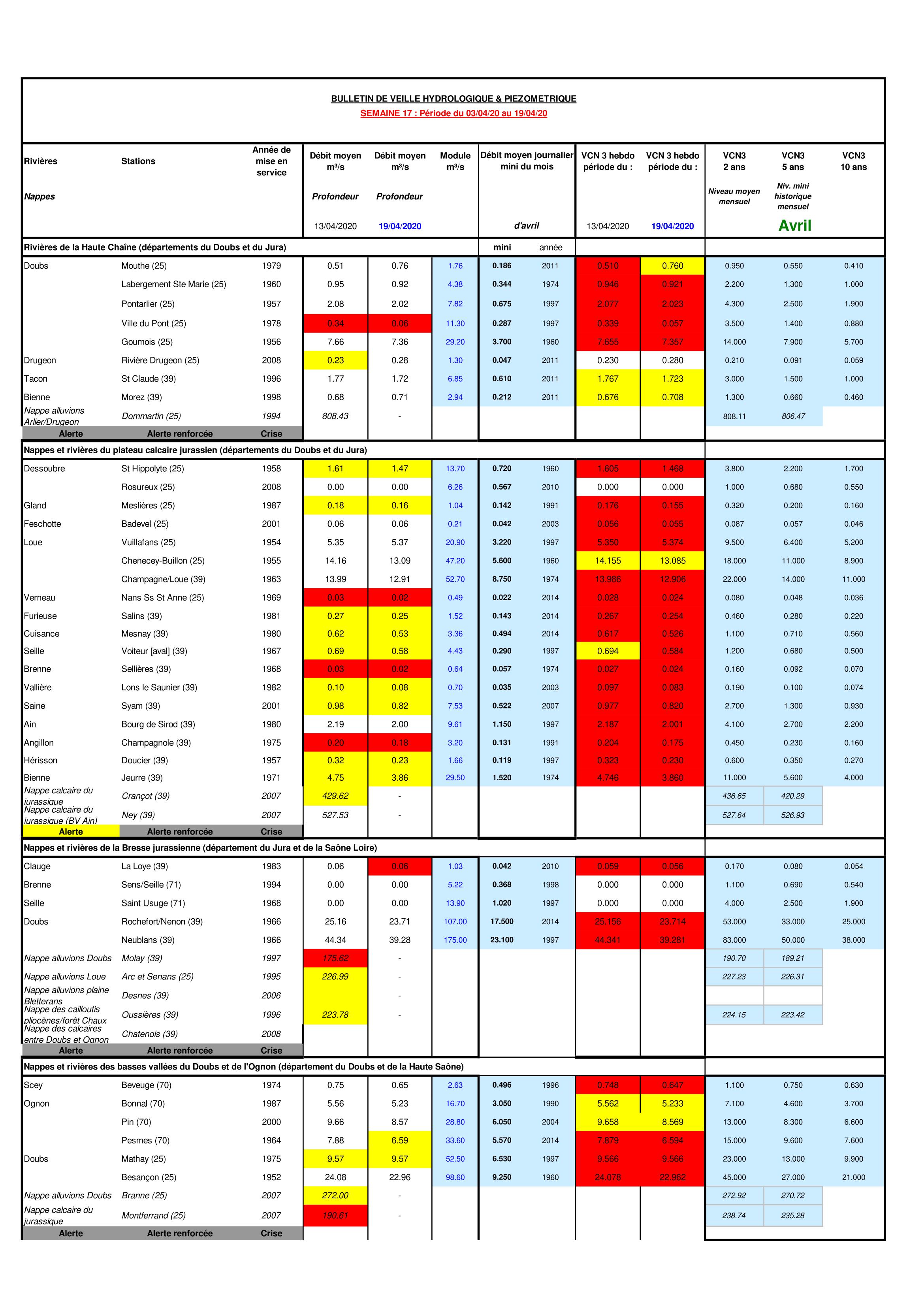 Bulletin Sécheresse BFC/Est semaine 17 - 2020