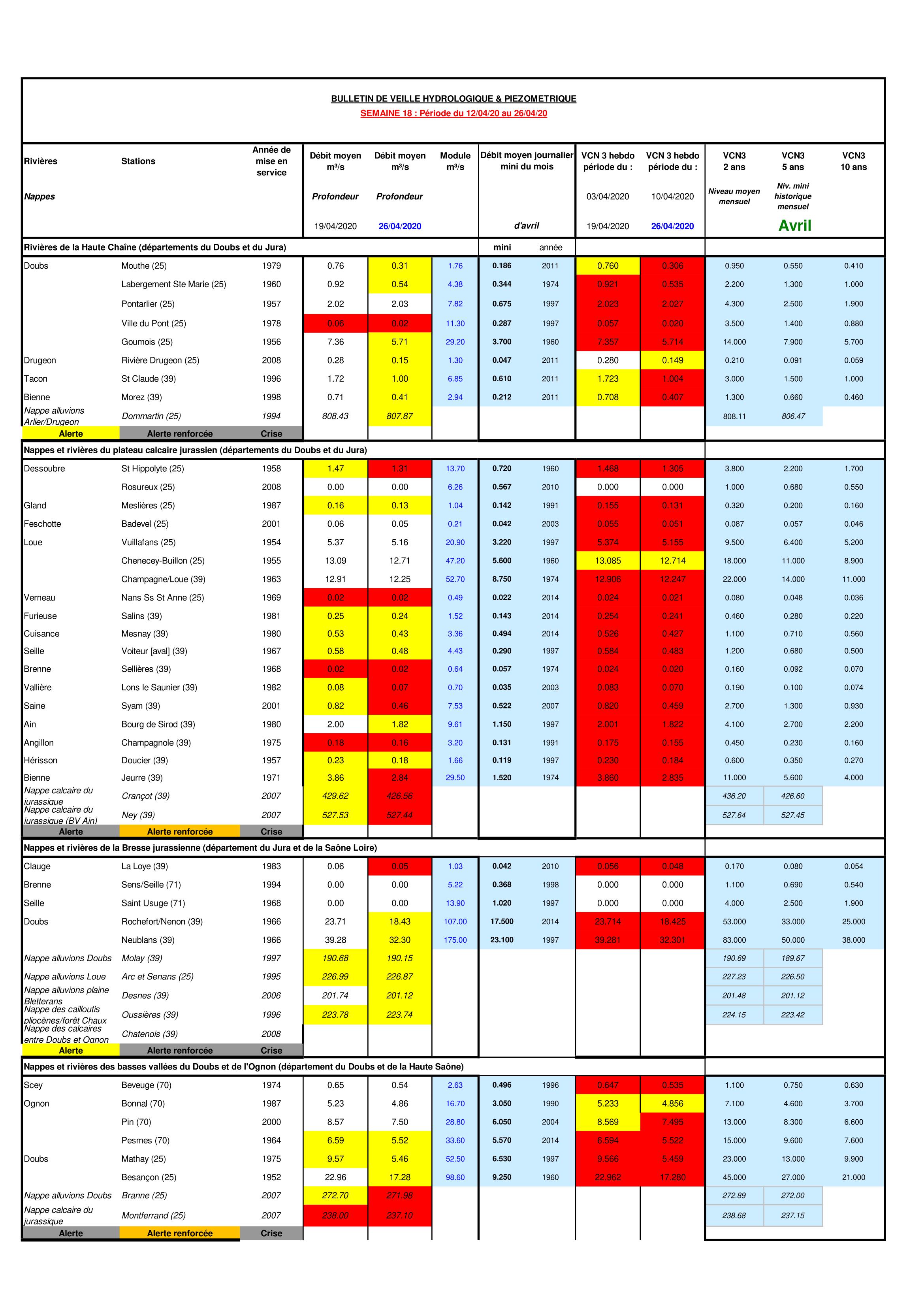 Bulletin Sécheresse BFC/Est semaine 18 - 2020