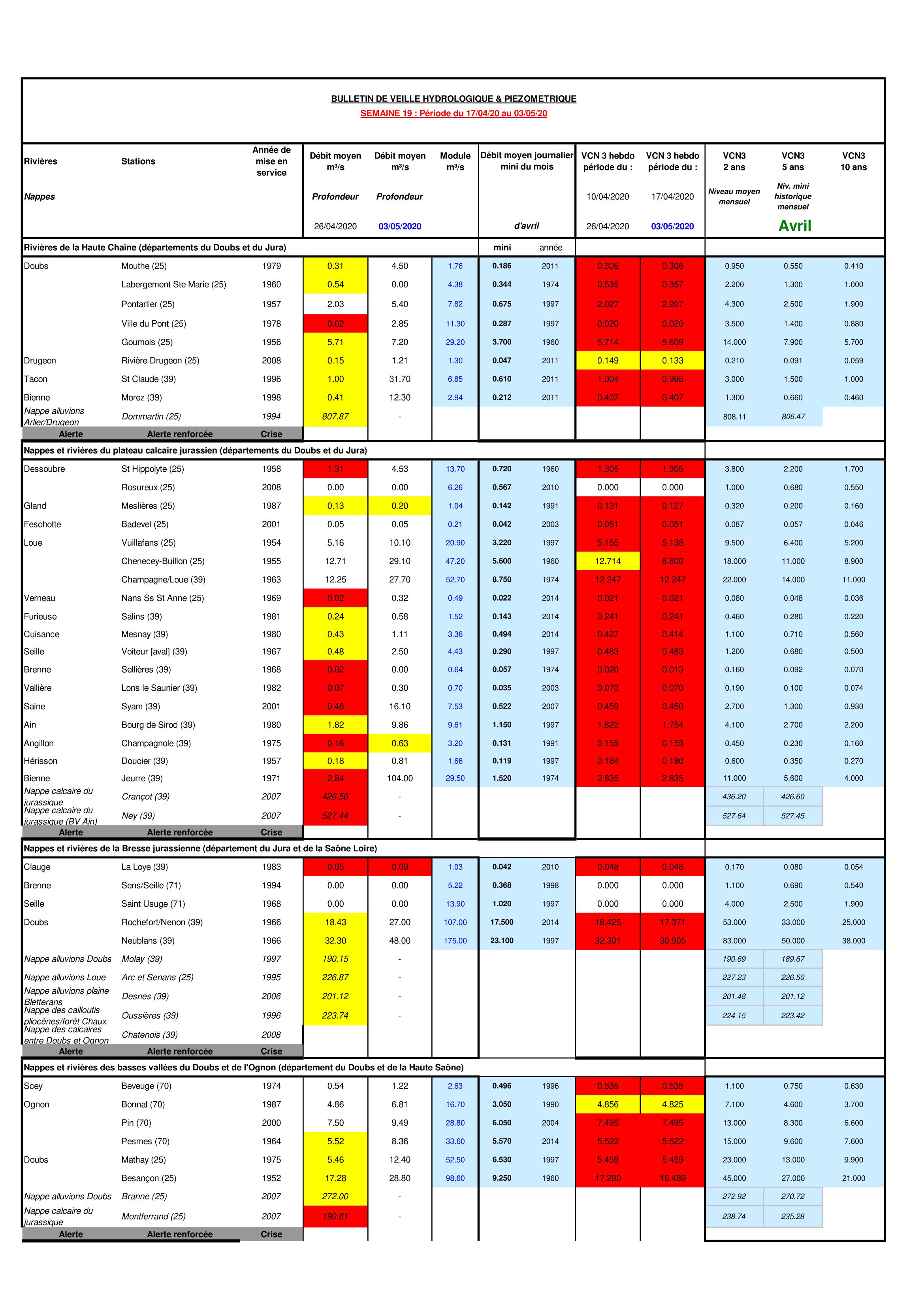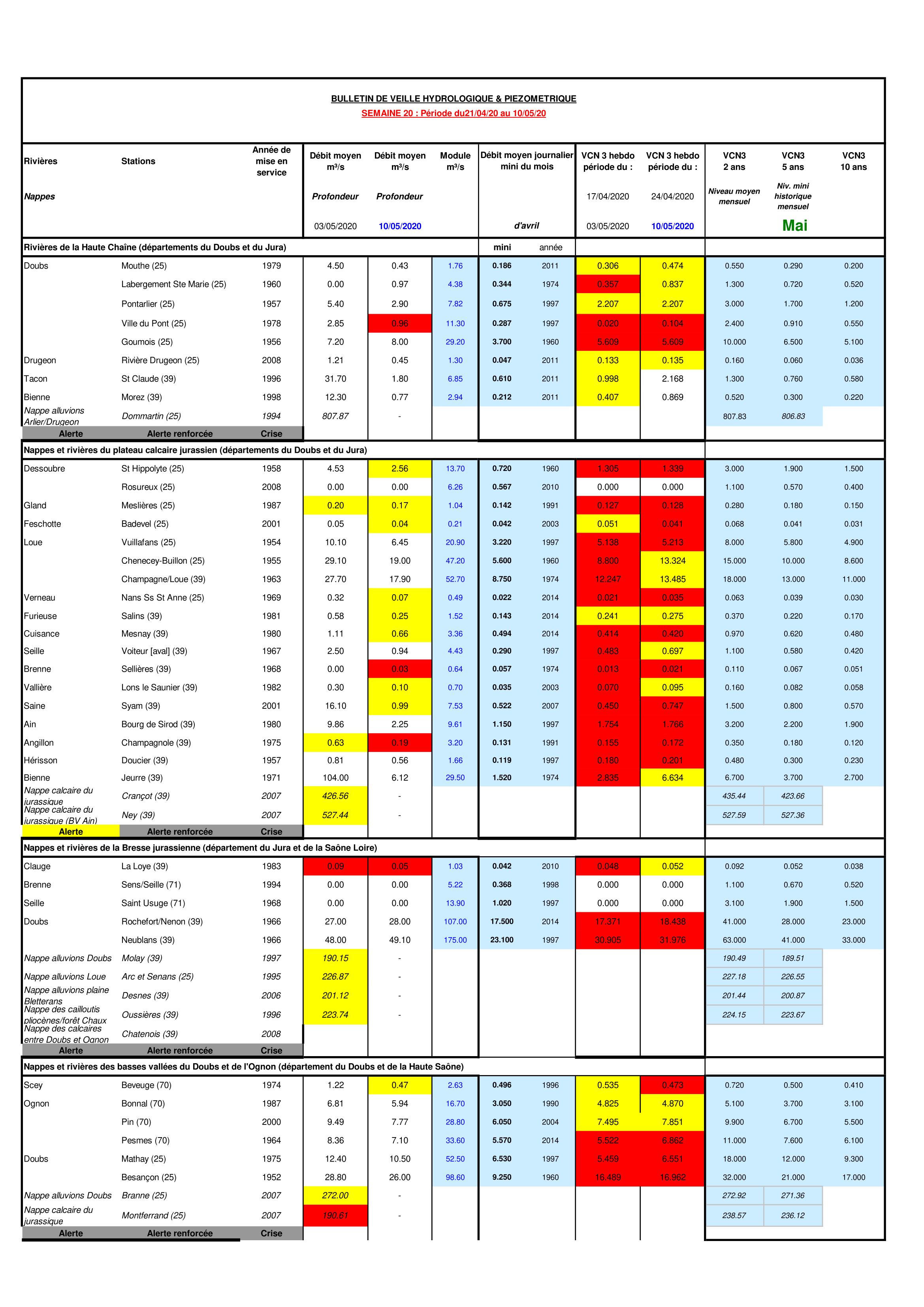 Bulletin Sécheresse BFC/Est semaine 19 - 2020