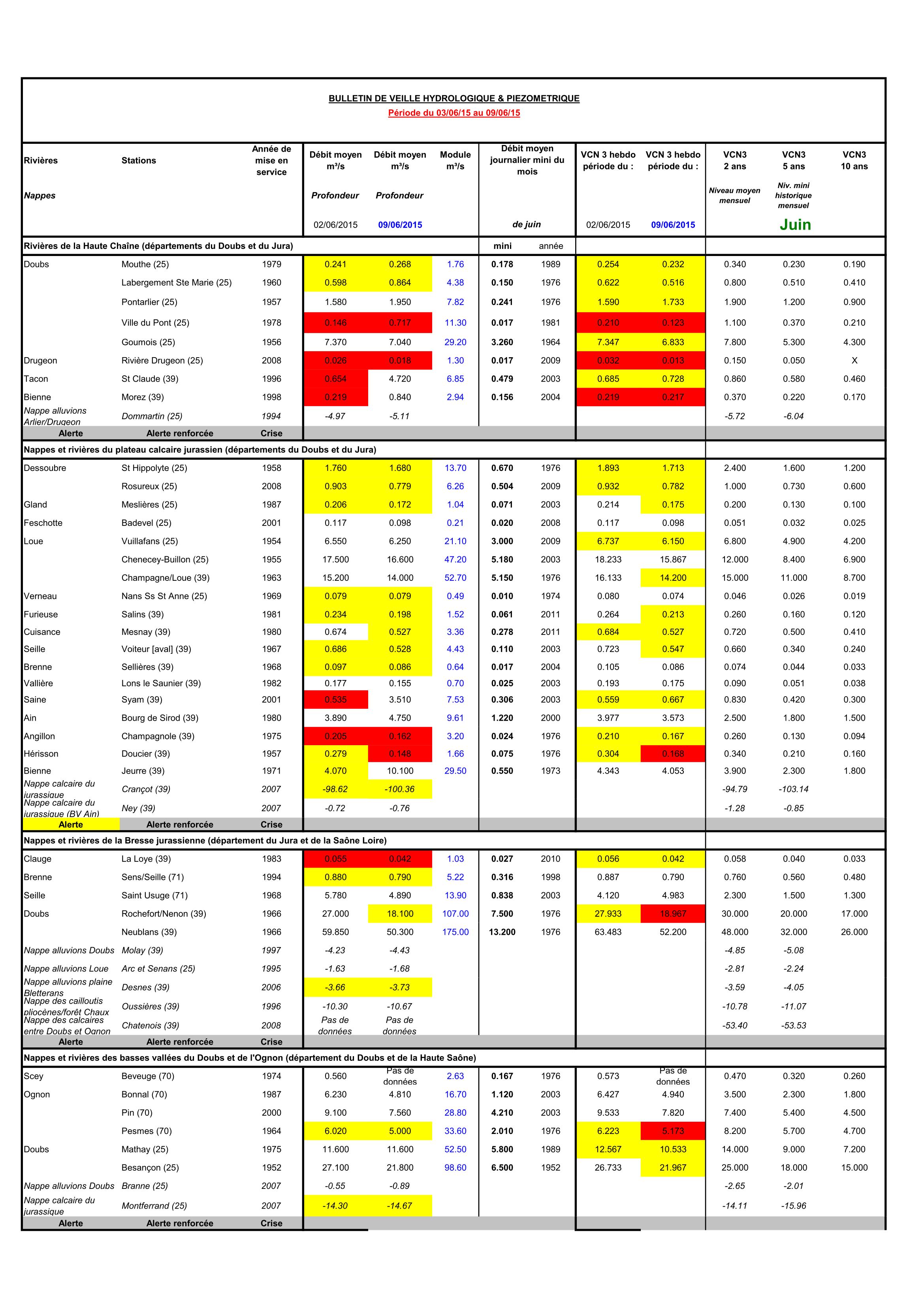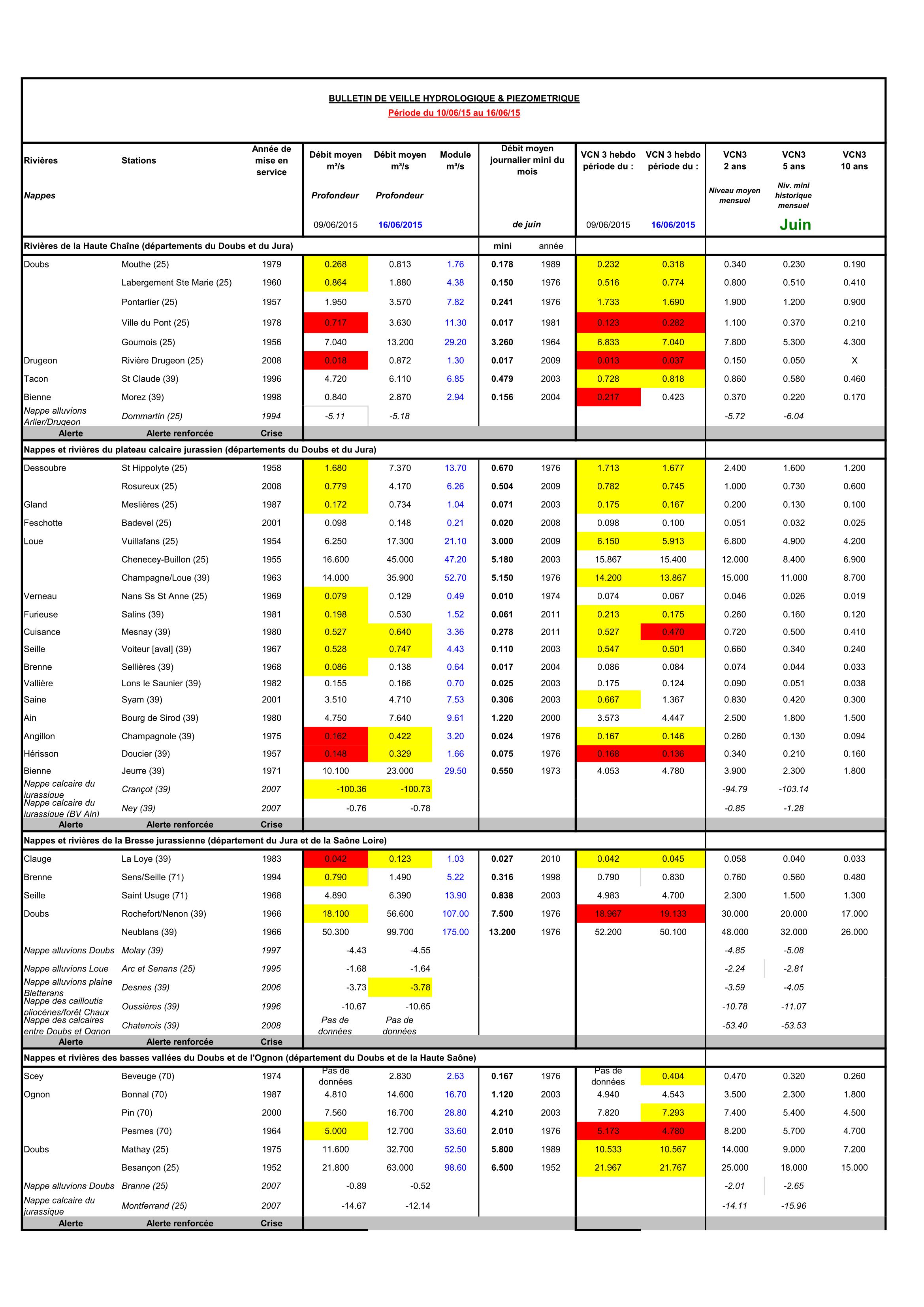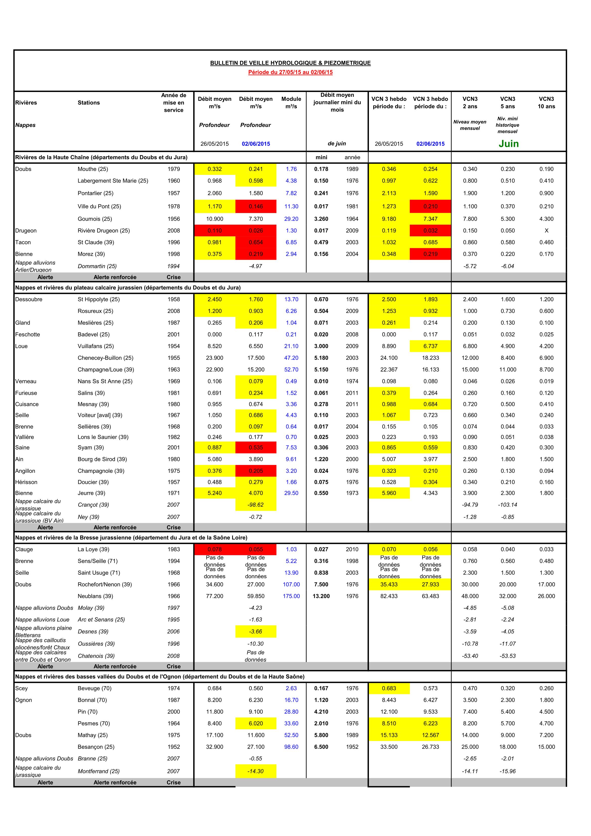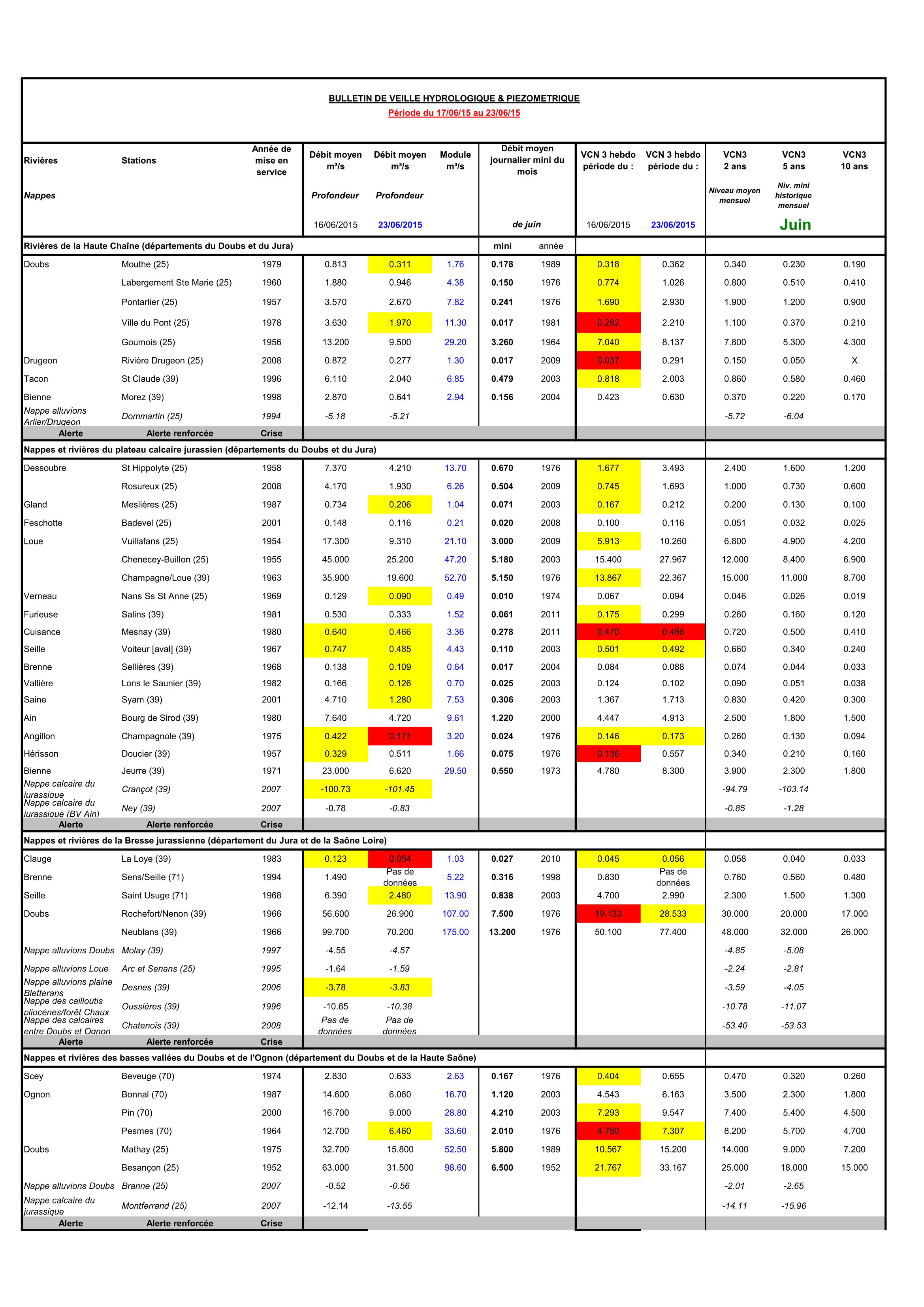 Bulletin Sécheresse semaine 23 - 2015