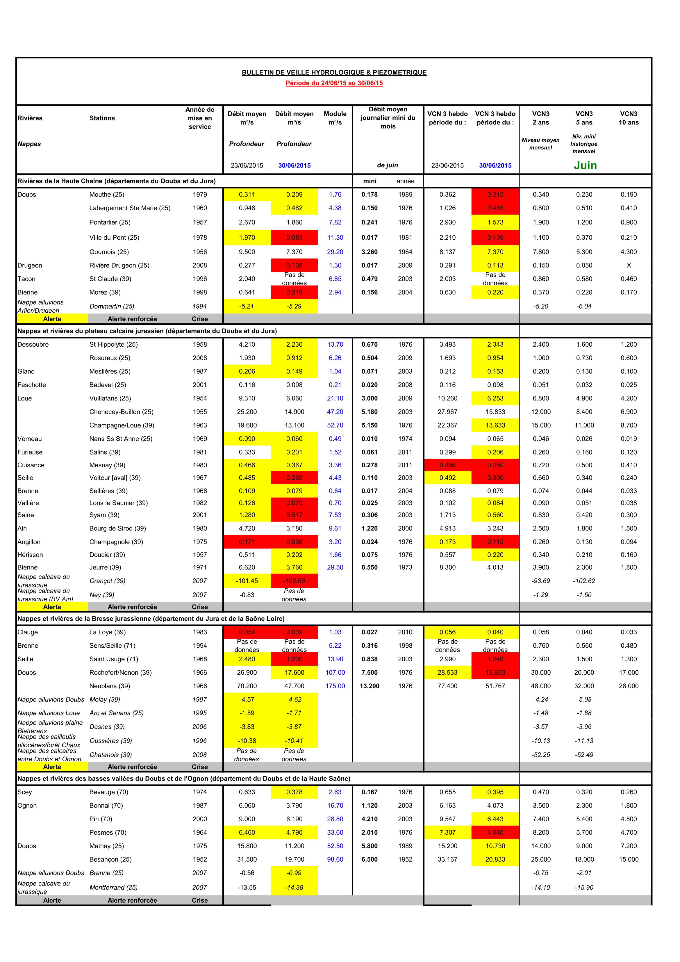 Bulletin Sécheresse semaine 24 - 2015