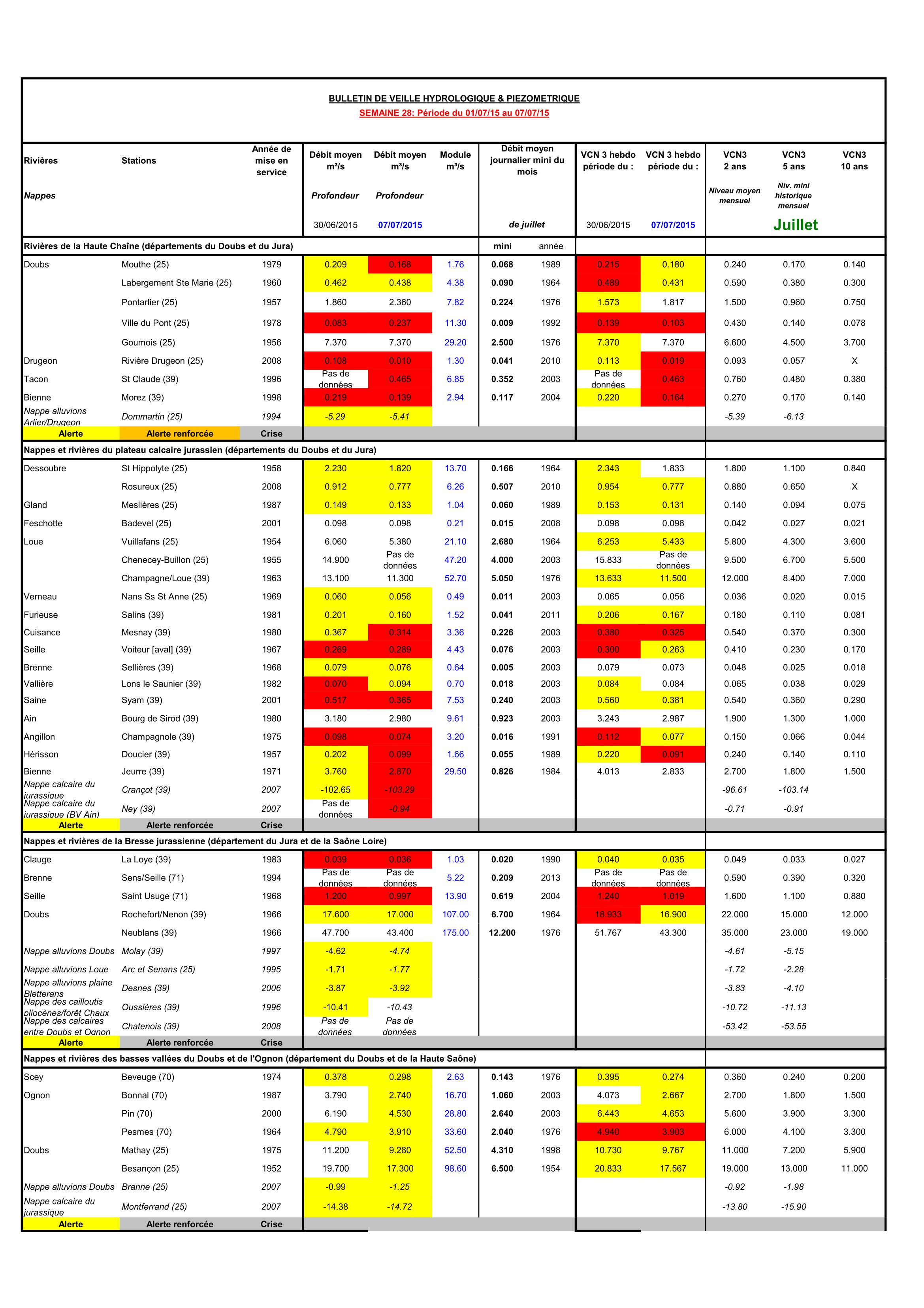 Bulletin Sécheresse semaine 28 - 2015
