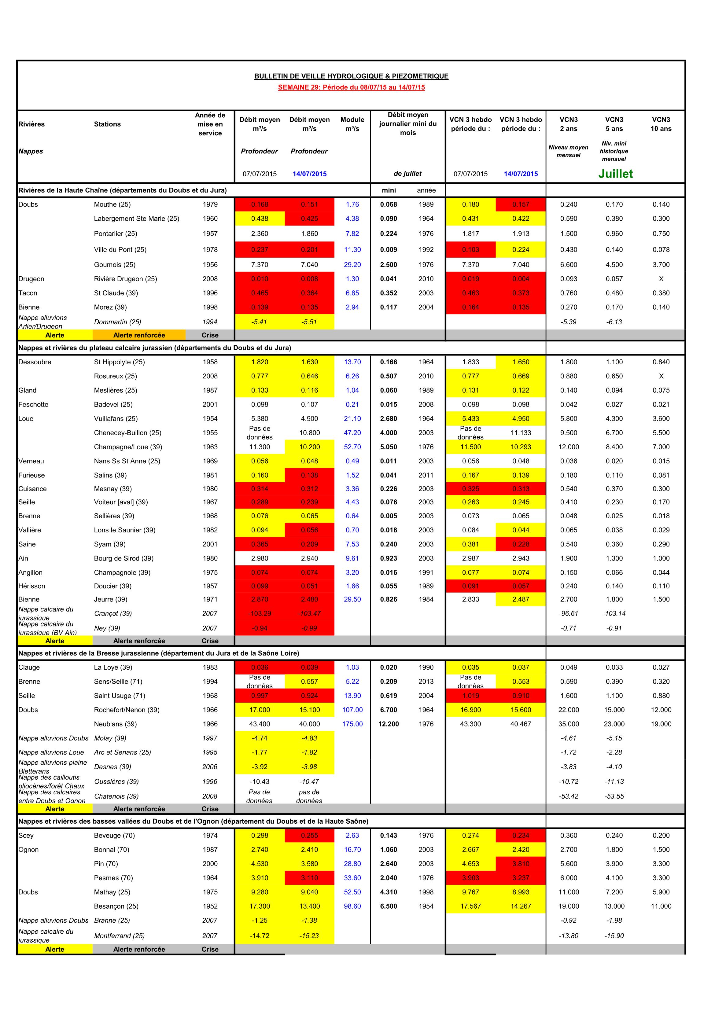 Bulletin Sécheresse semaine 29 - 2015