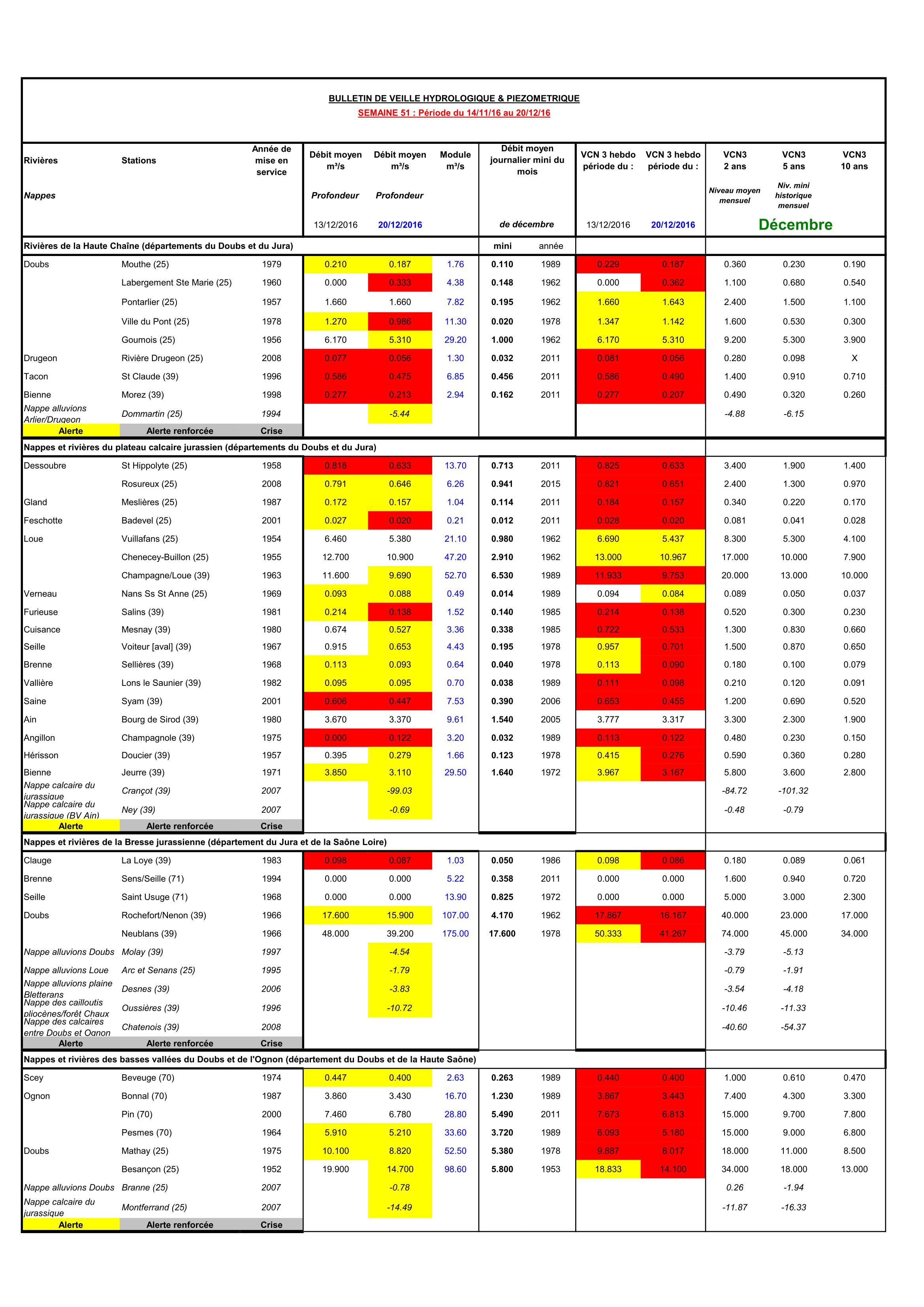 Bulletin Sécheresse semaine 51 - 2016