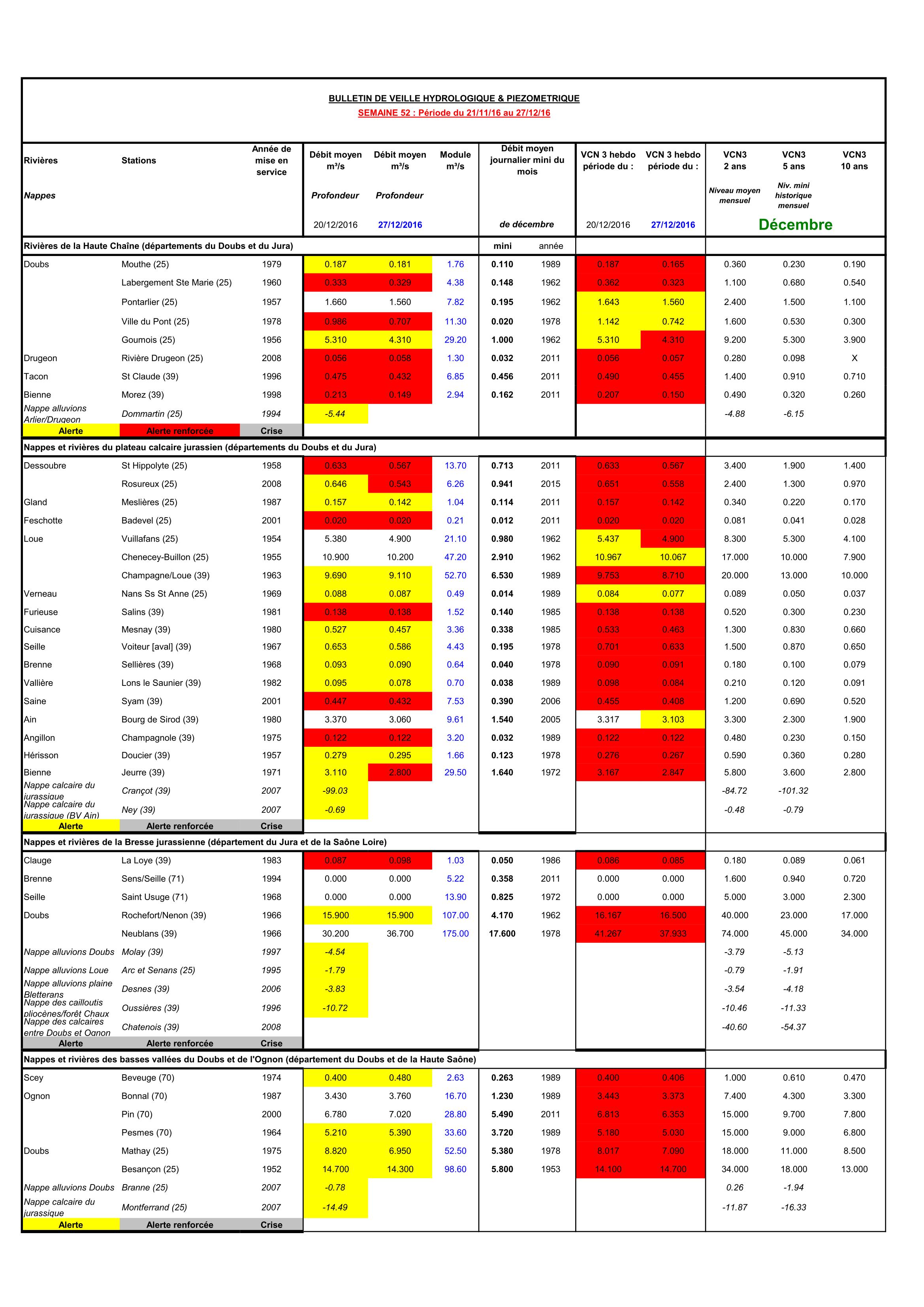 Bulletin Sécheresse semaine 52 - 2016