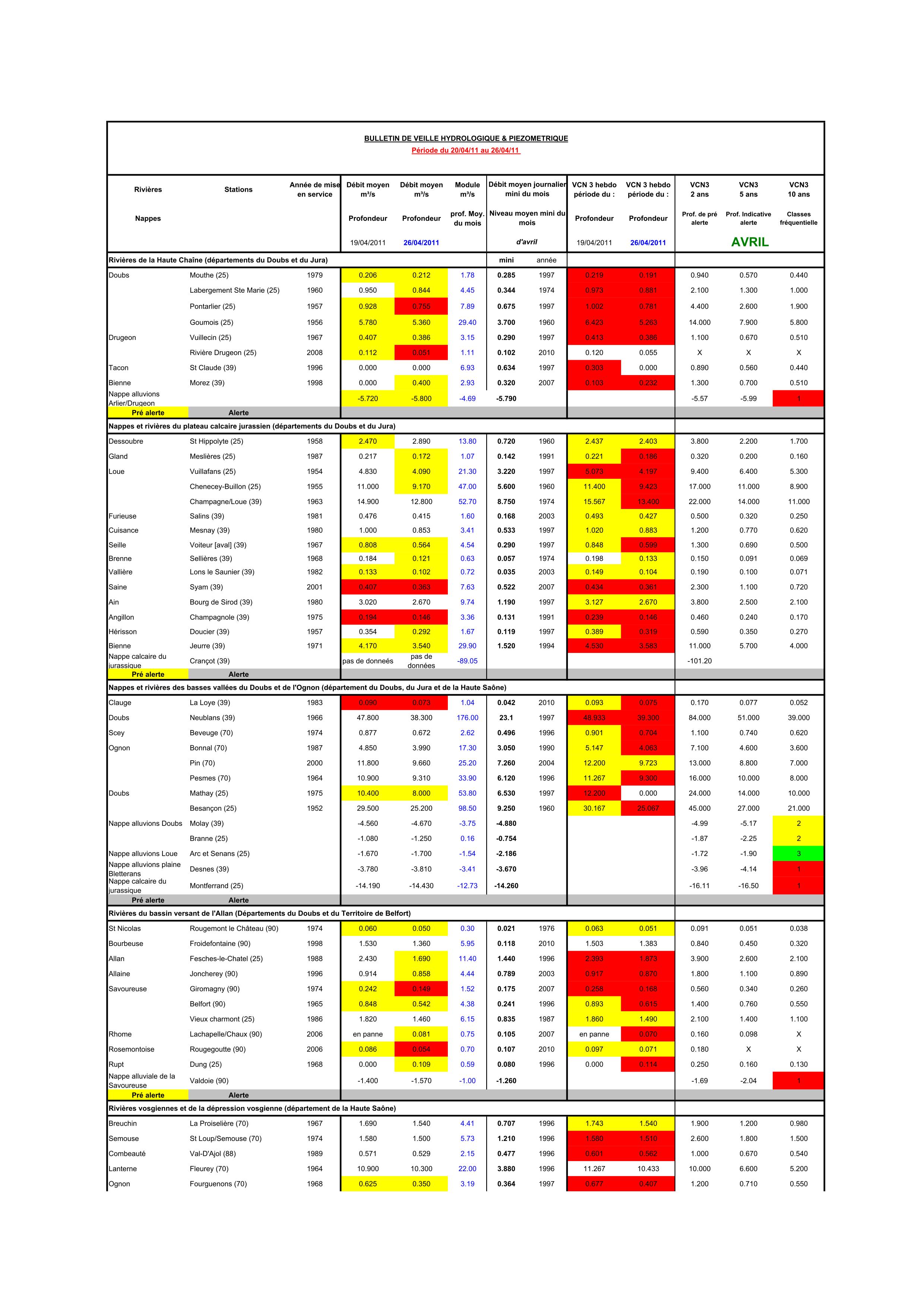 Bulletin Sécheresse semaine 16-2011