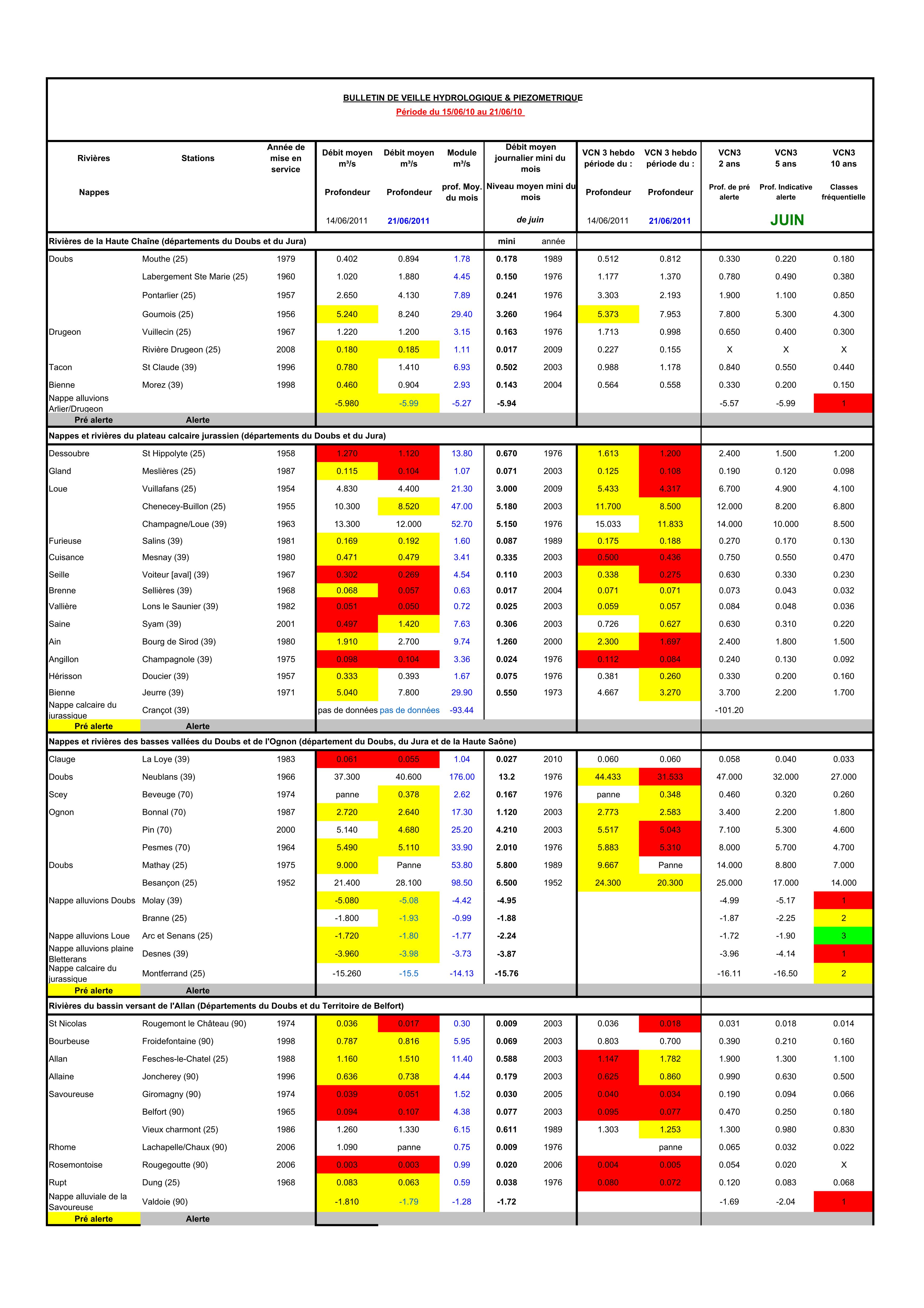 Bulletin Sécheresse semaine 24 - 2011