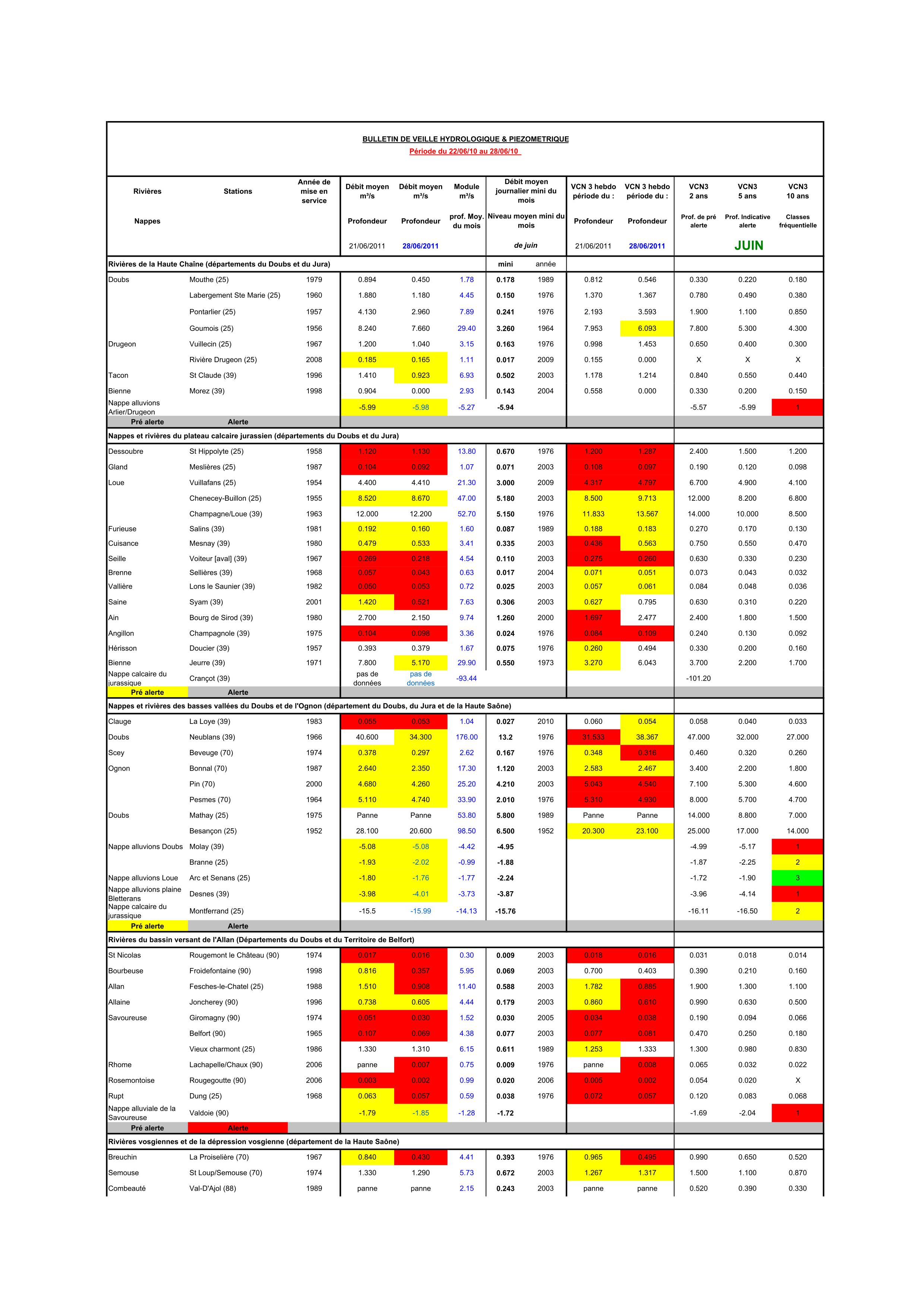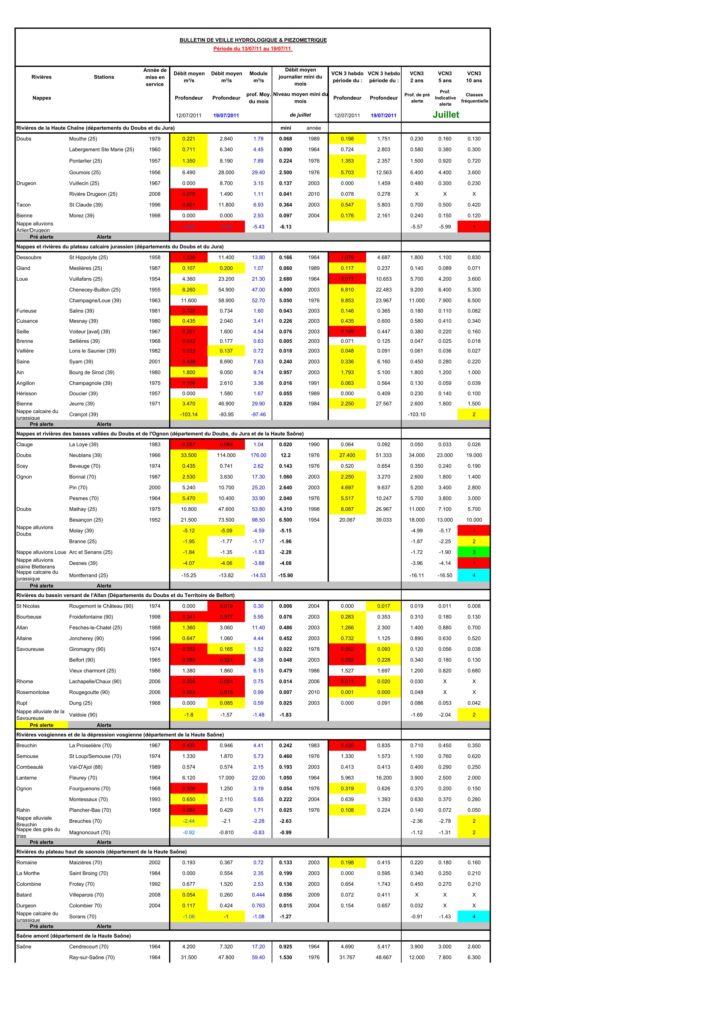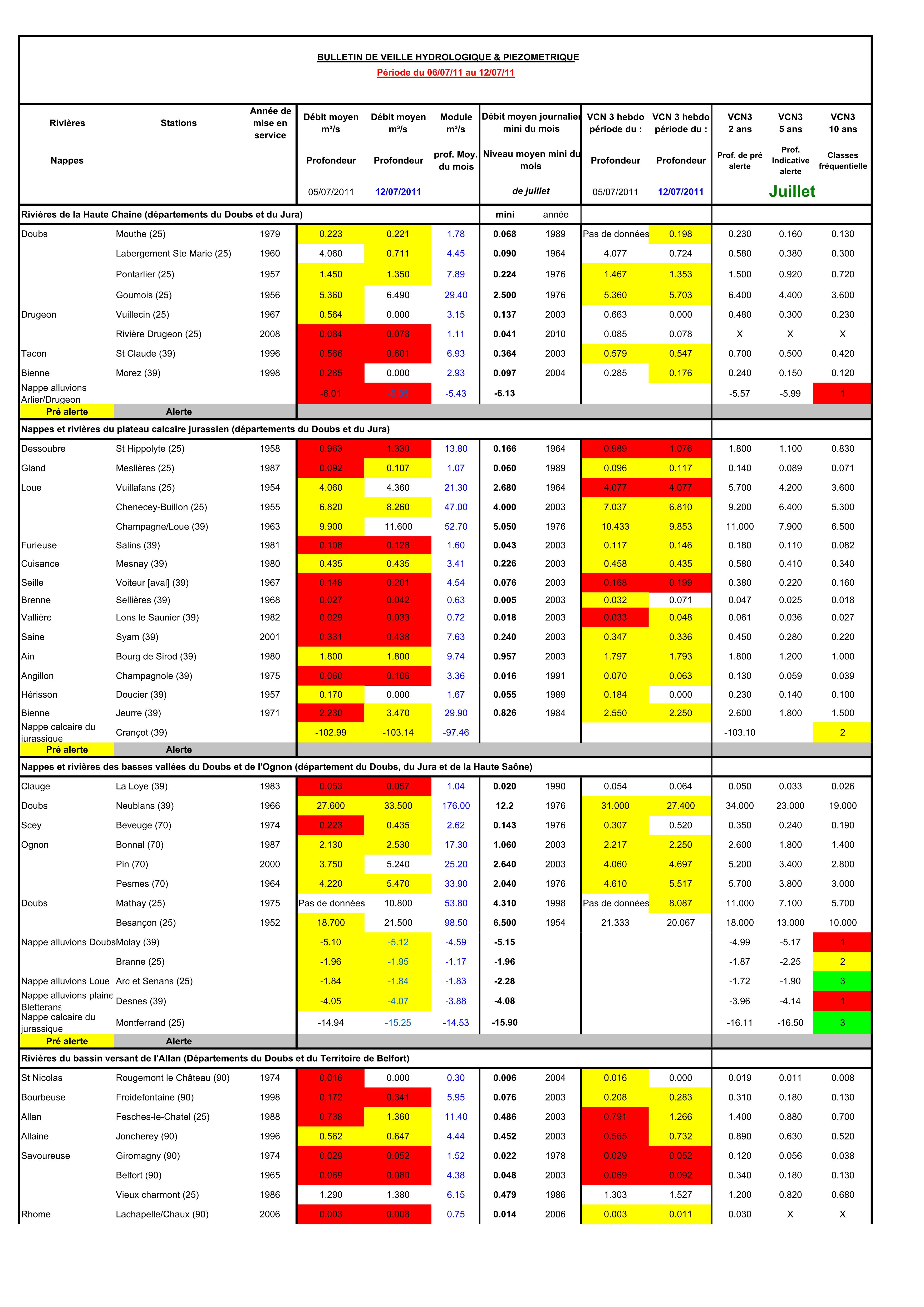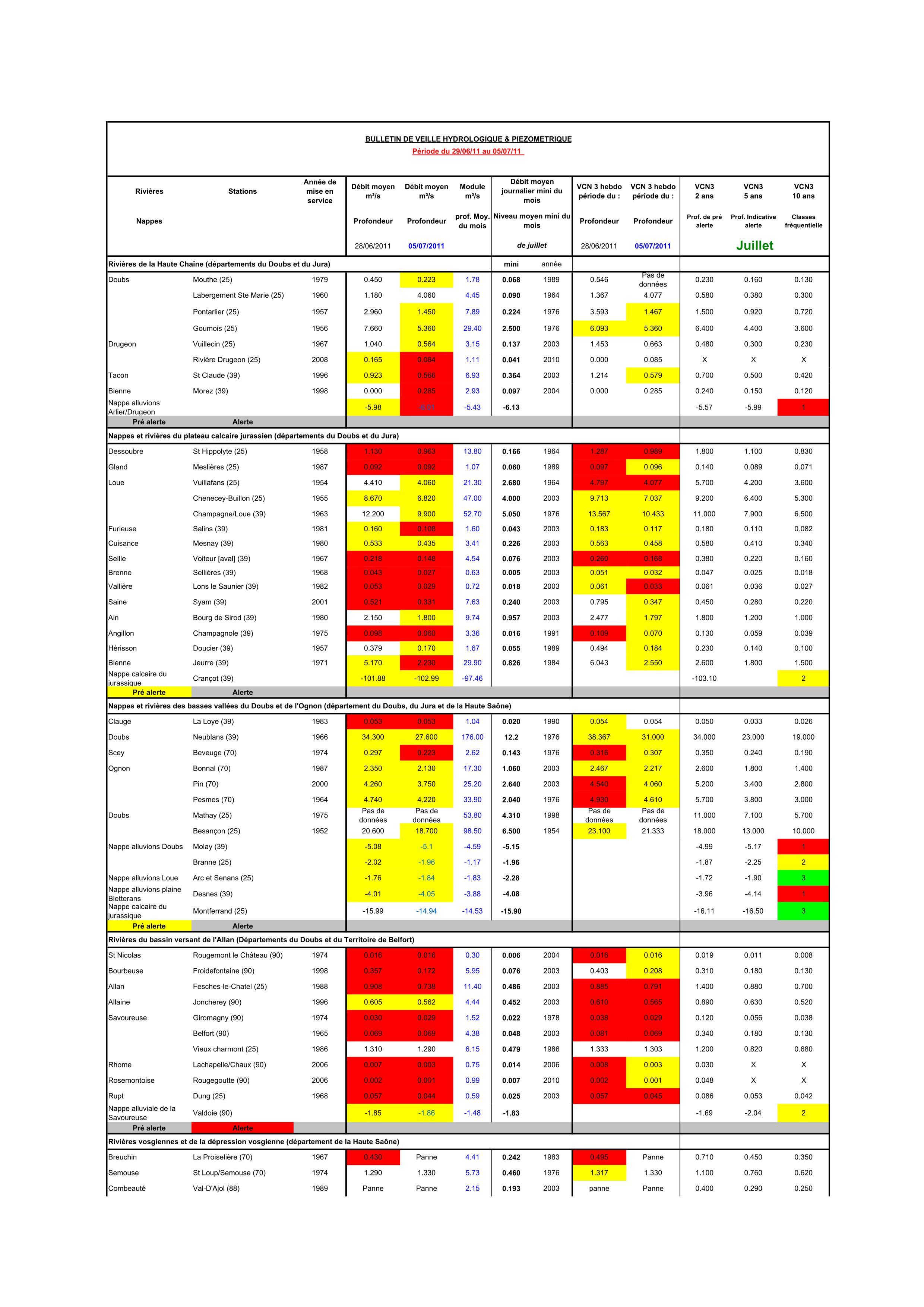 Bulletin Sécheresse semaine 28 - 2011