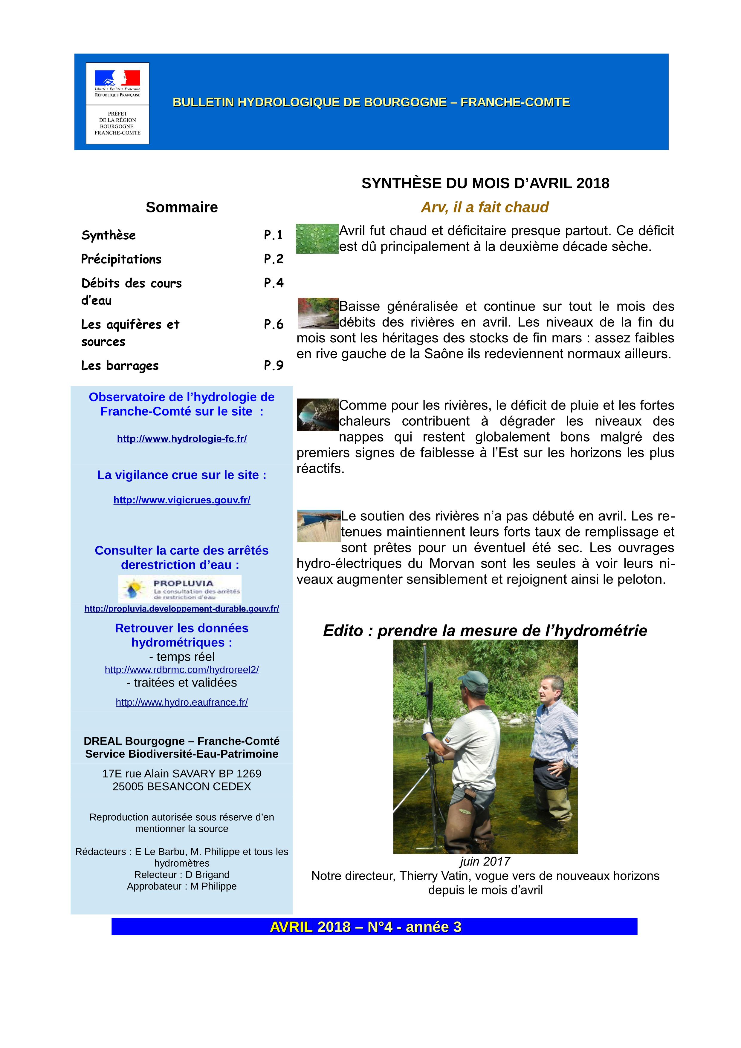 Bulletin hydrologique avril 2018