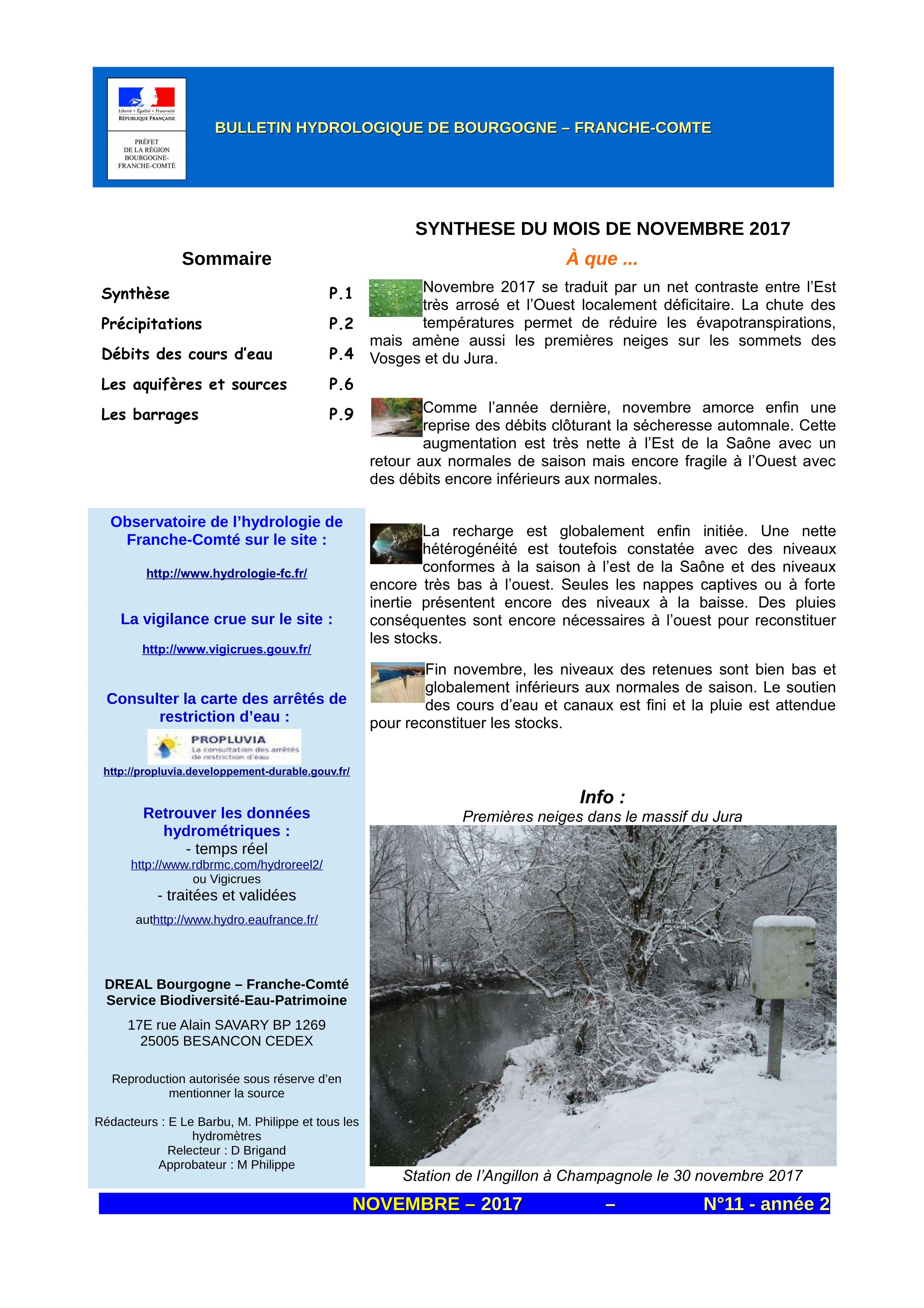 Bulletin hydrologique novembre 2017