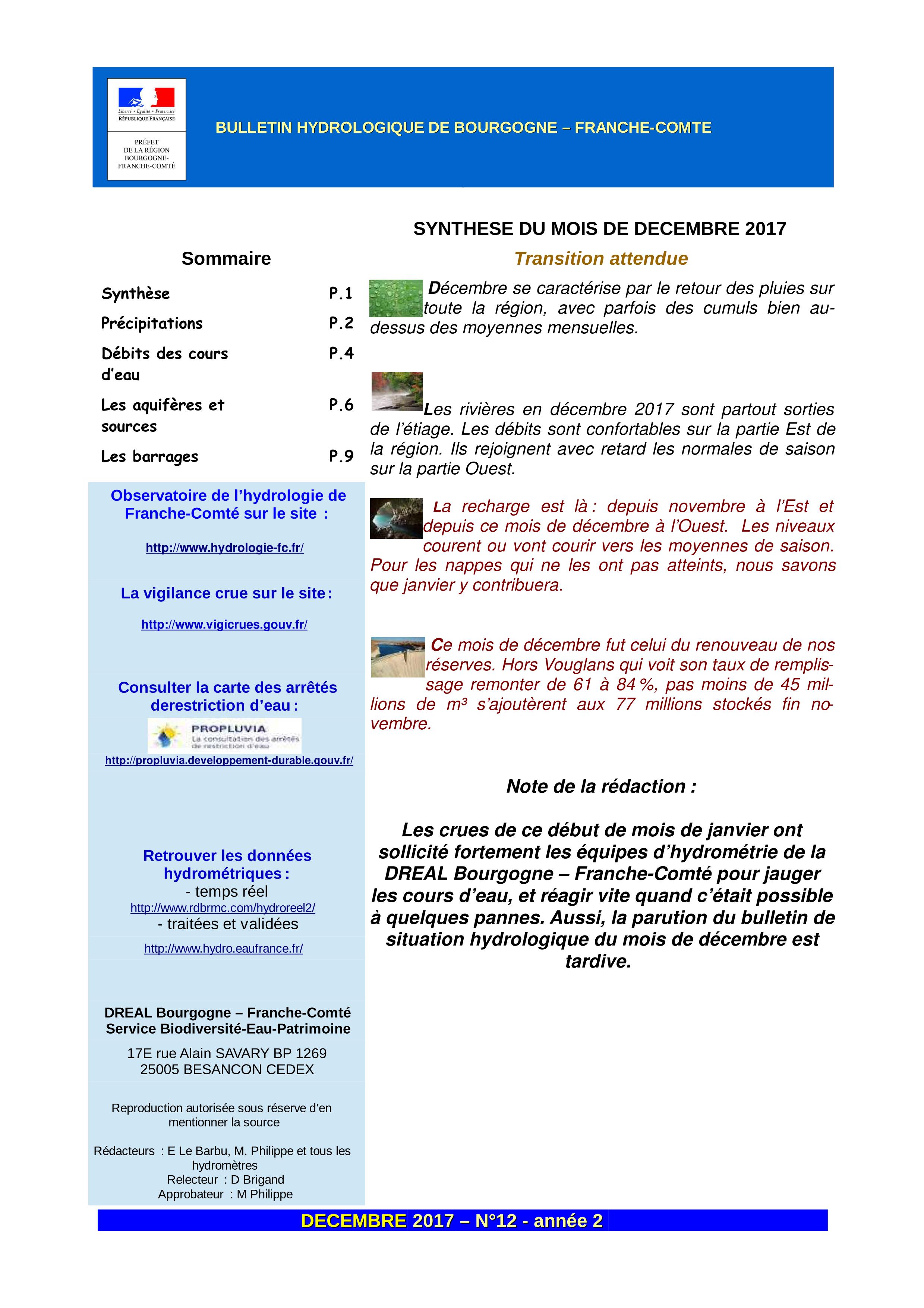 Bulletin hydrologique décembre 2017