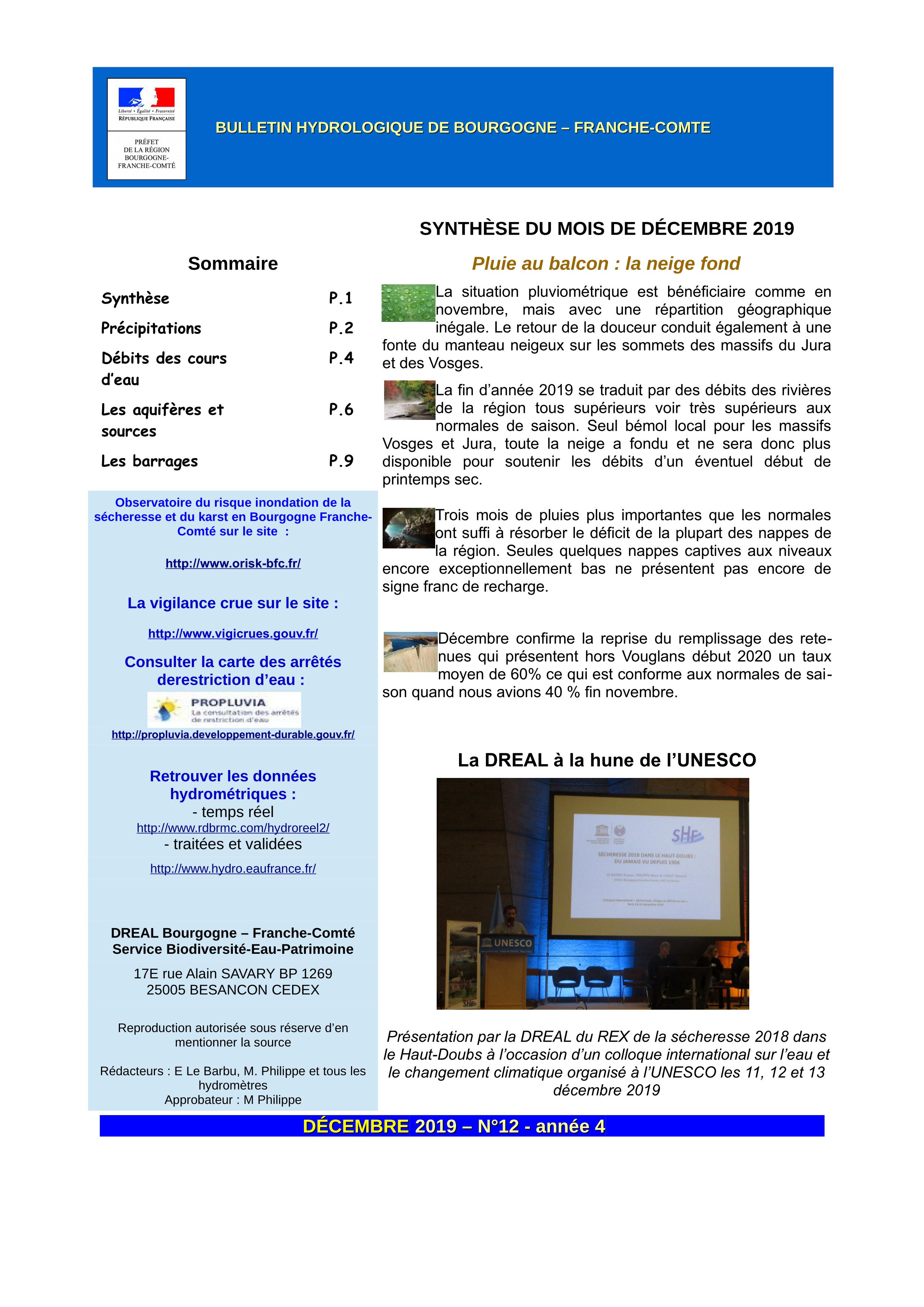 Bulletin hydrologique décembre 2019
