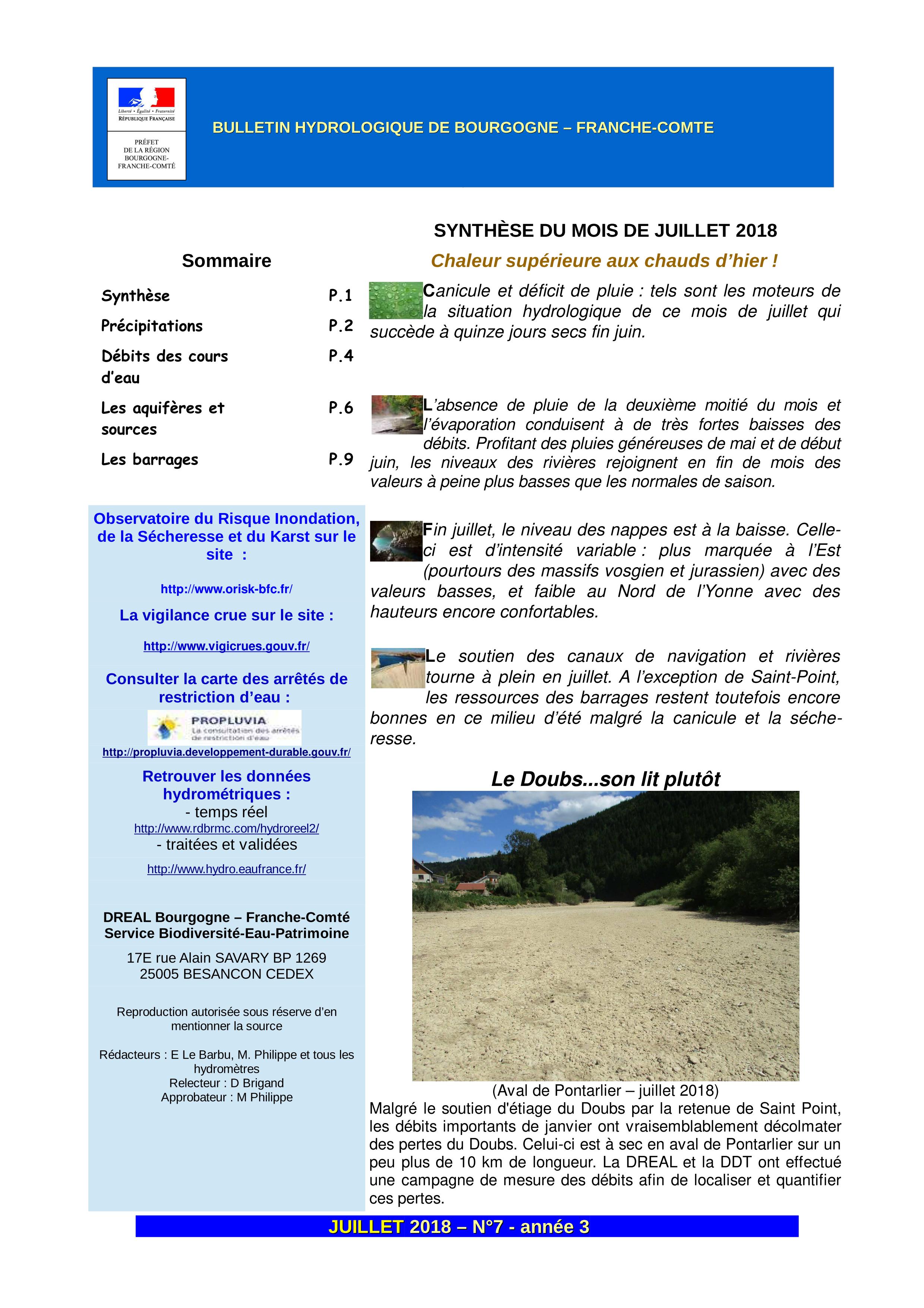 Bulletin hydrologique juillet 2018
