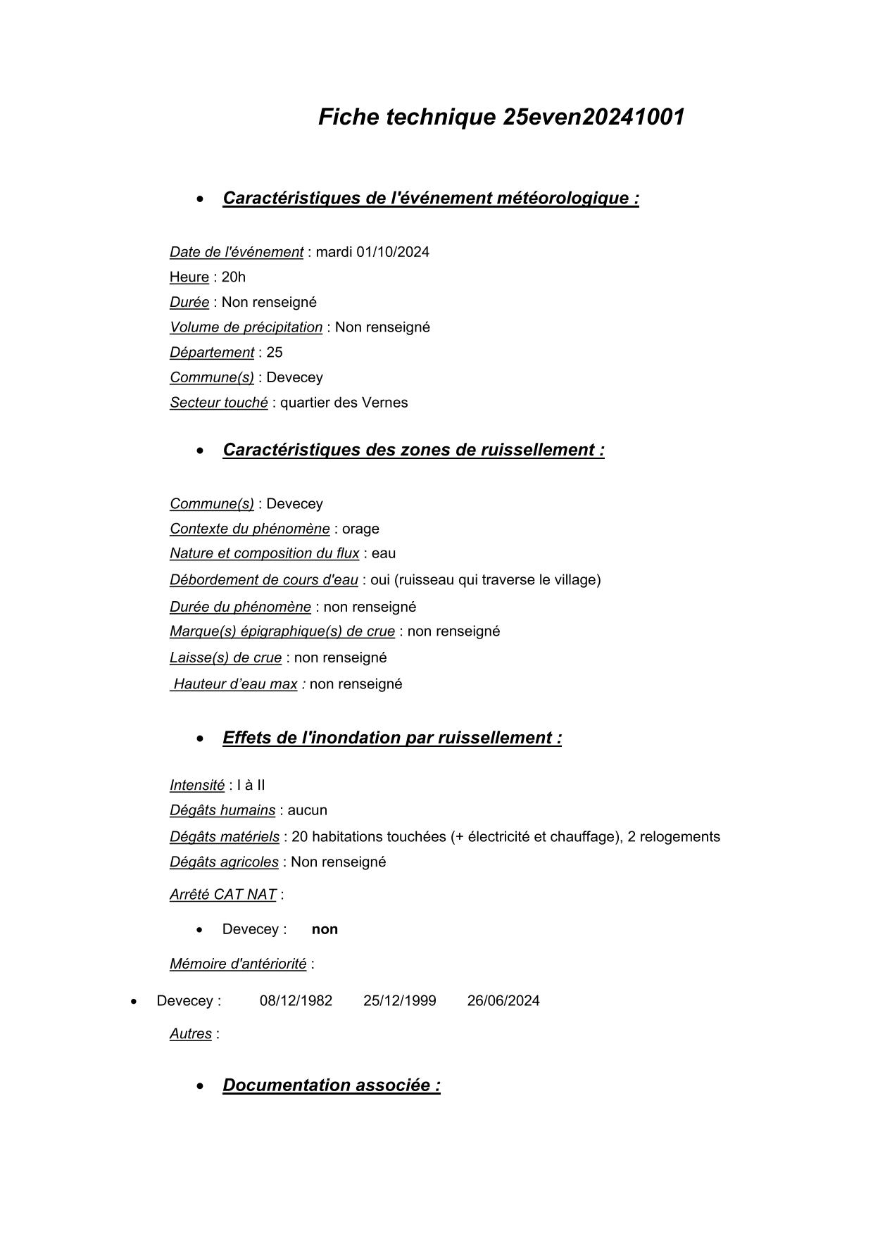Synthèse de l'évènement de ruissellement du 01/10/2024 en 25