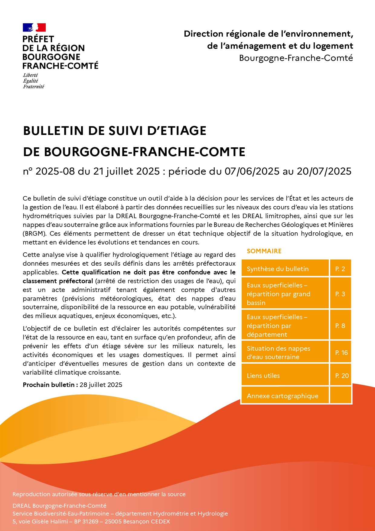 Bulletin de suivi d'étiage de Bourgogne-Franche-Comté n°2025-08 du 21 juillet 2025 : période du 07/07/2025 au 20/07/2025