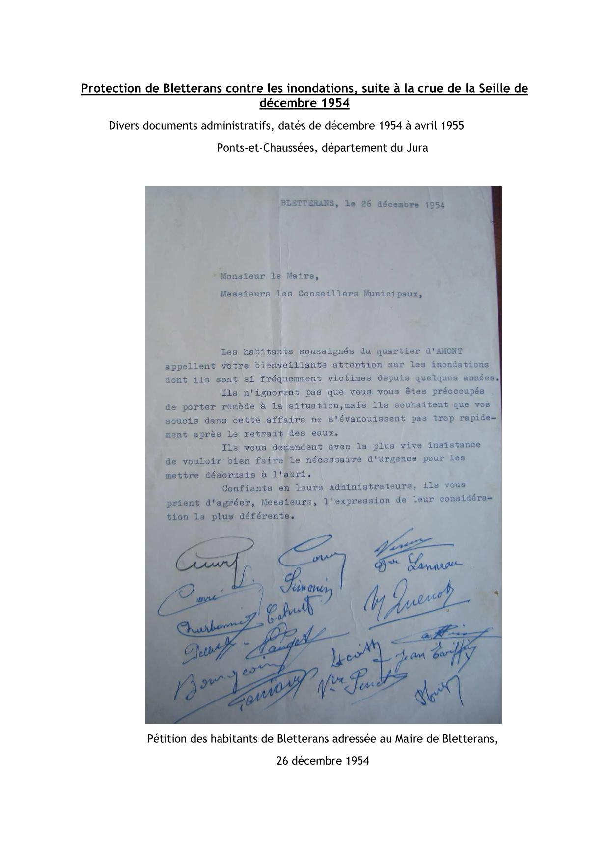 Ponts et chaussées décembre 1954 document administratif Bletterans