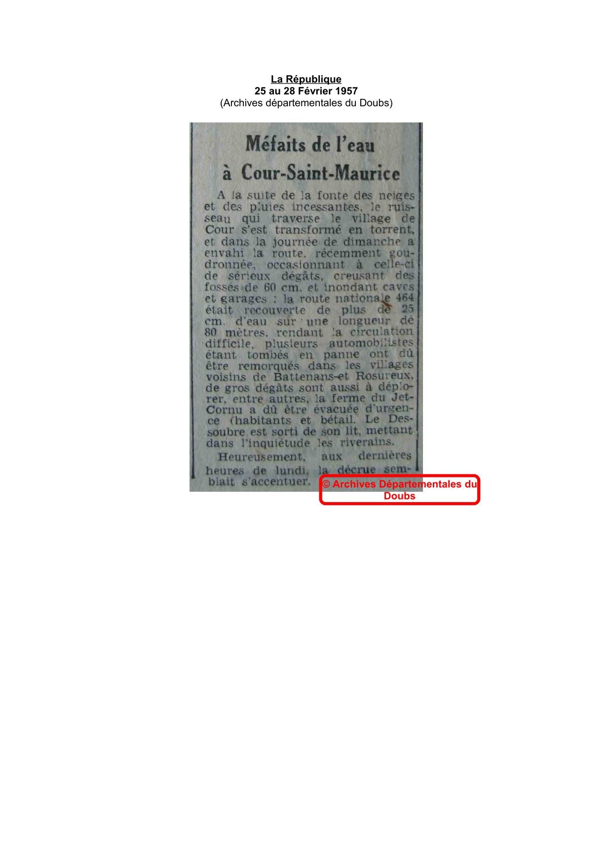 Service d’annonce des crues – Ponts et Chaussées – Département du Jura – Arrondissement du Nord