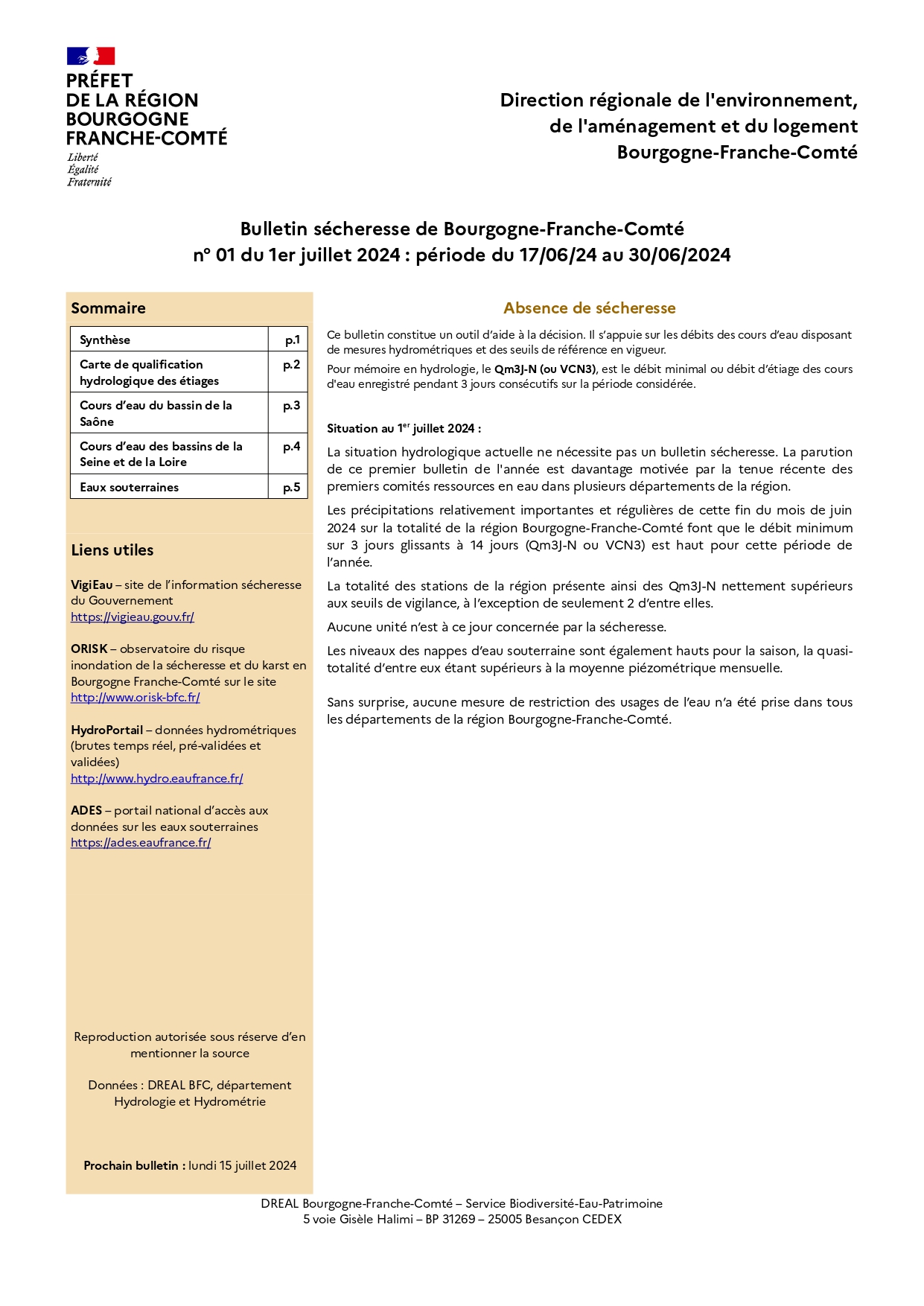 Bulletin sécheresse juillet 2024