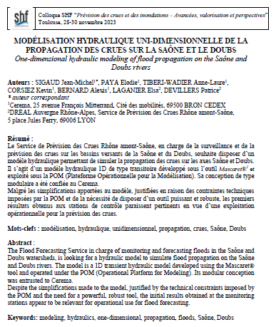 Modélisation hydraulique uni-dimensionnelle de la propagation des crues sur la Saône et le Doubs - Poster