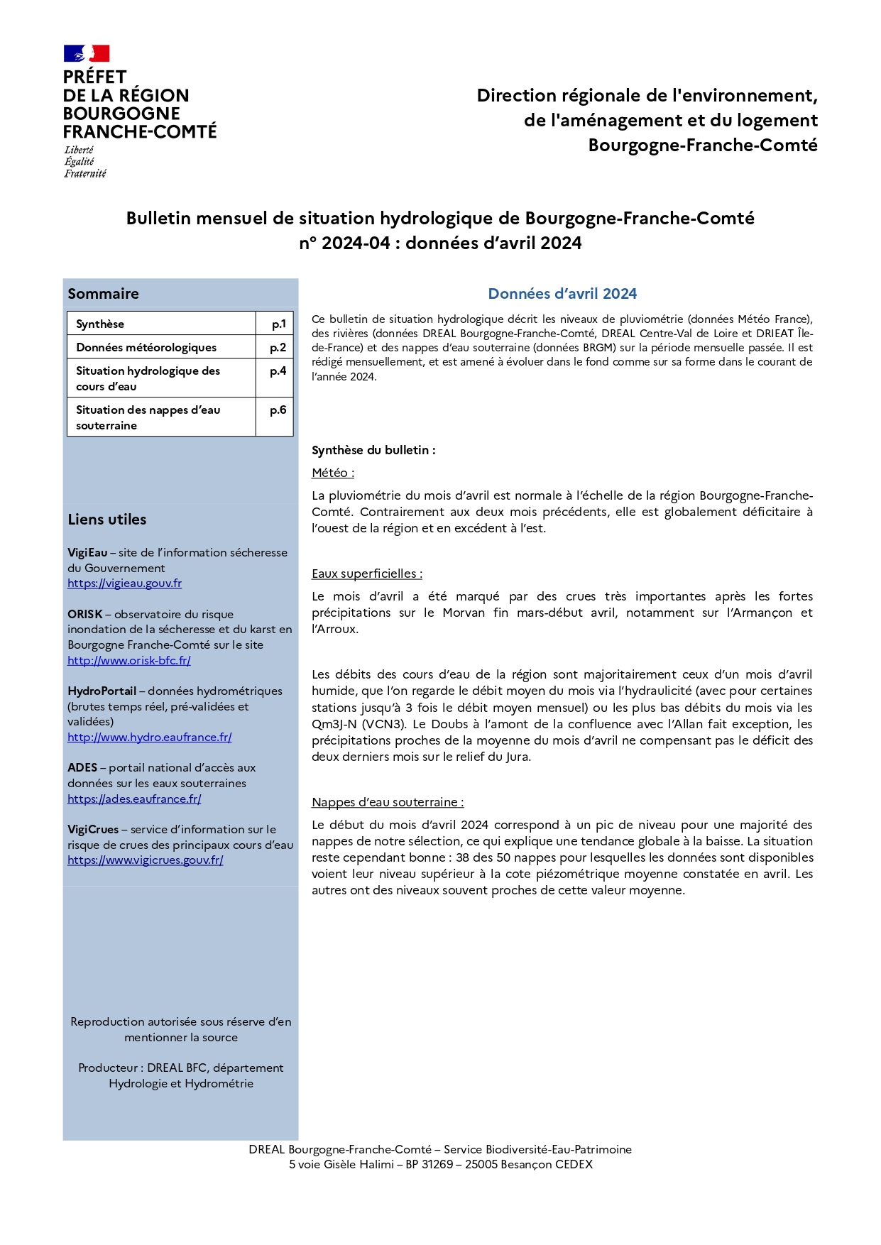 Bulletin hydrologique avril 2024