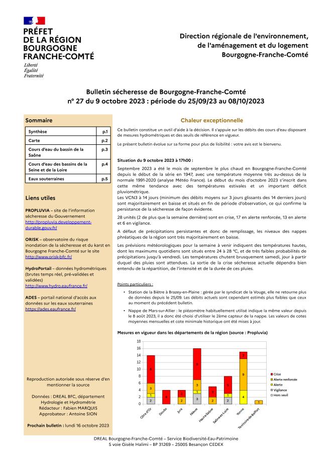 Bulletin Sécheresse BFC n°27 du 09-10-2023
