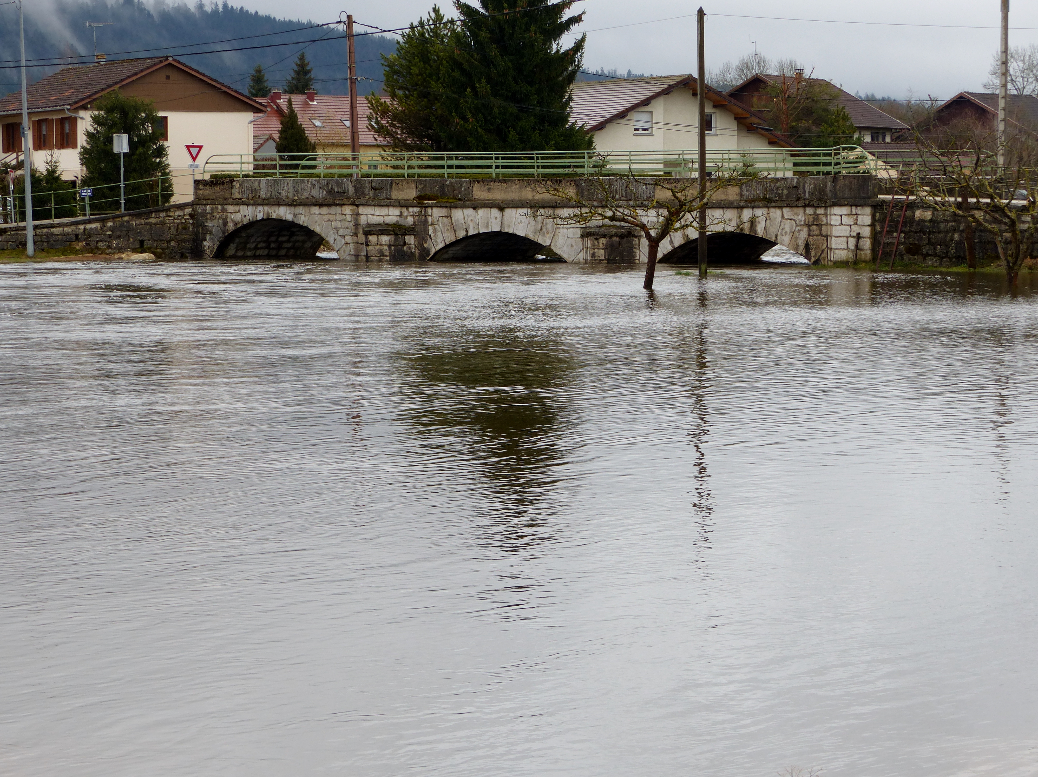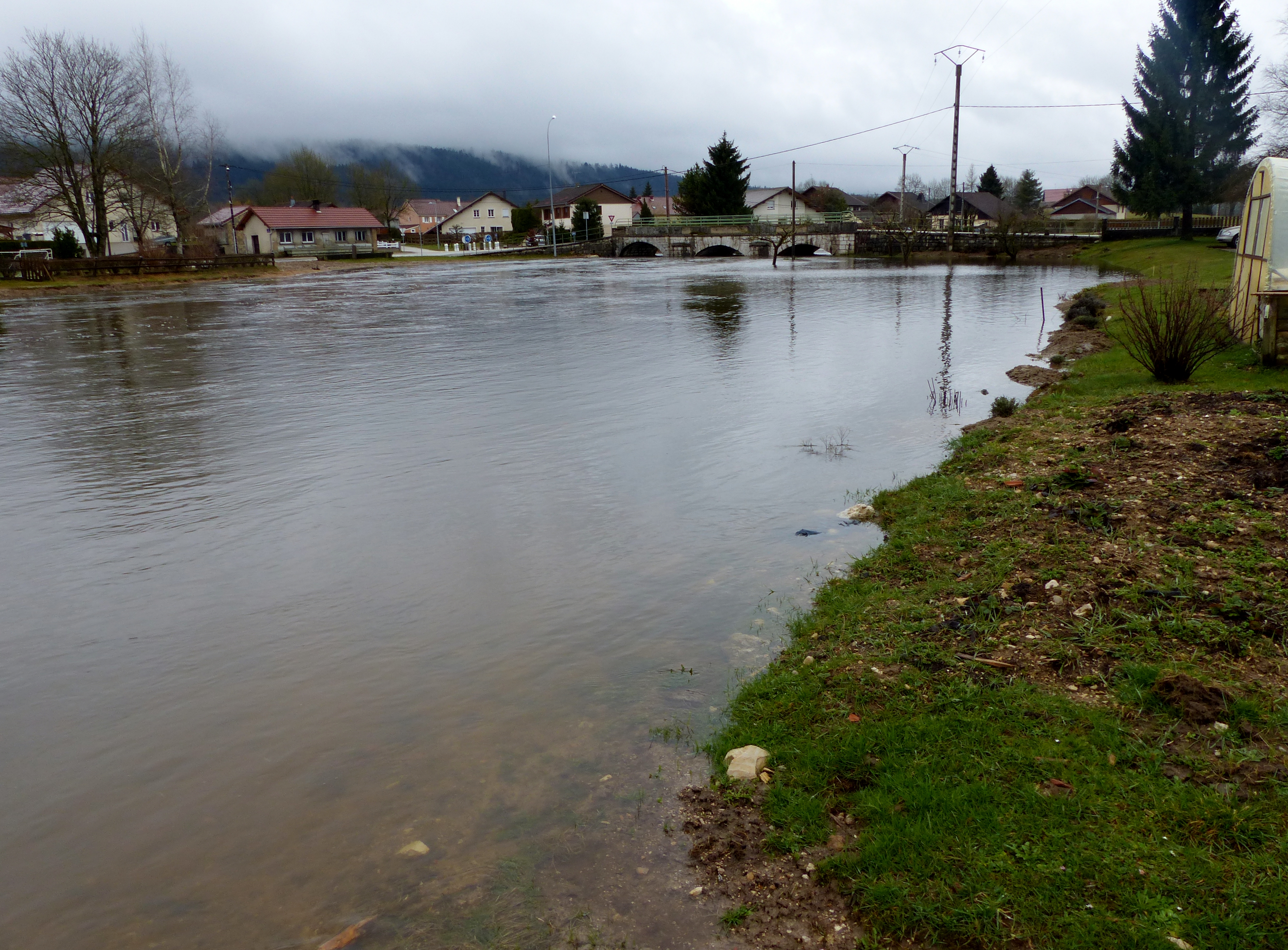 Photo de la crue du Drugeon de mars 2015 à Bouverans 2