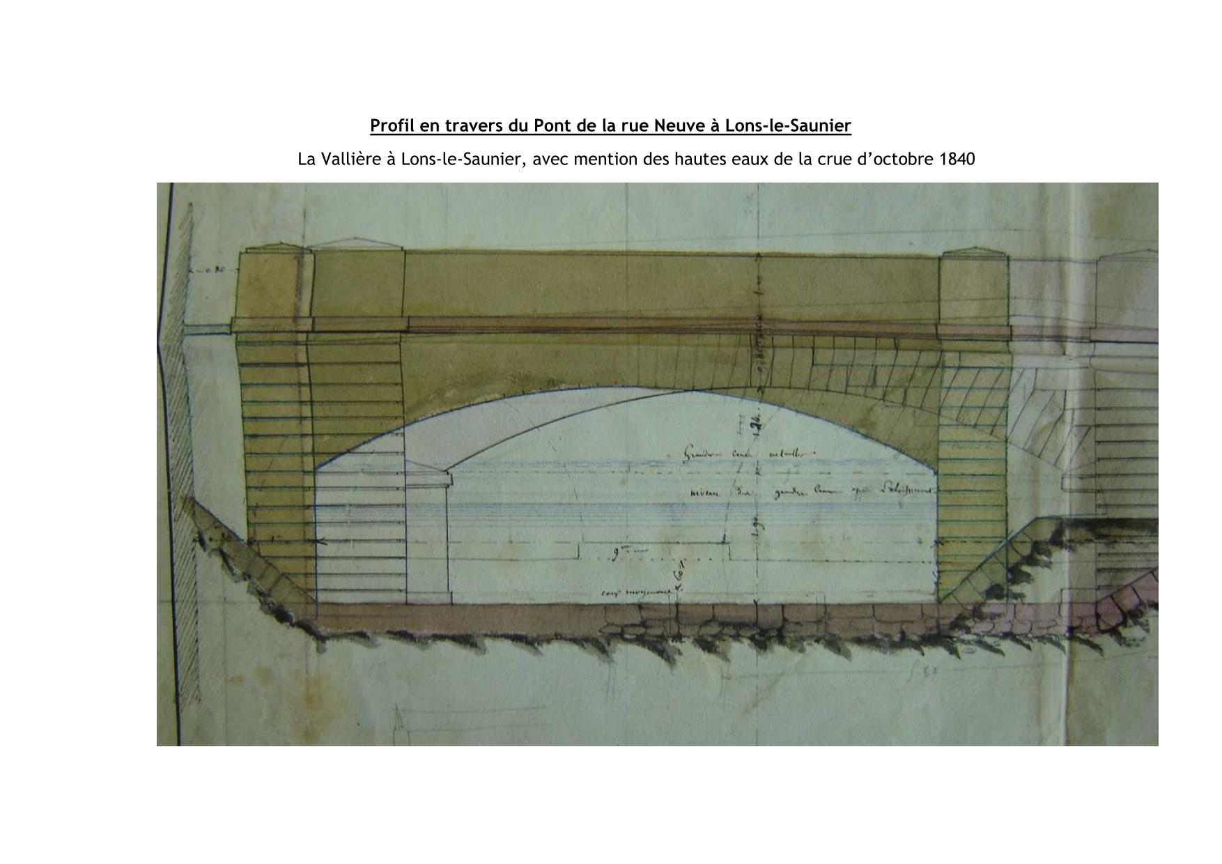 Plan hautes eaux pont rue neuve Lons-le-Saunier 1840