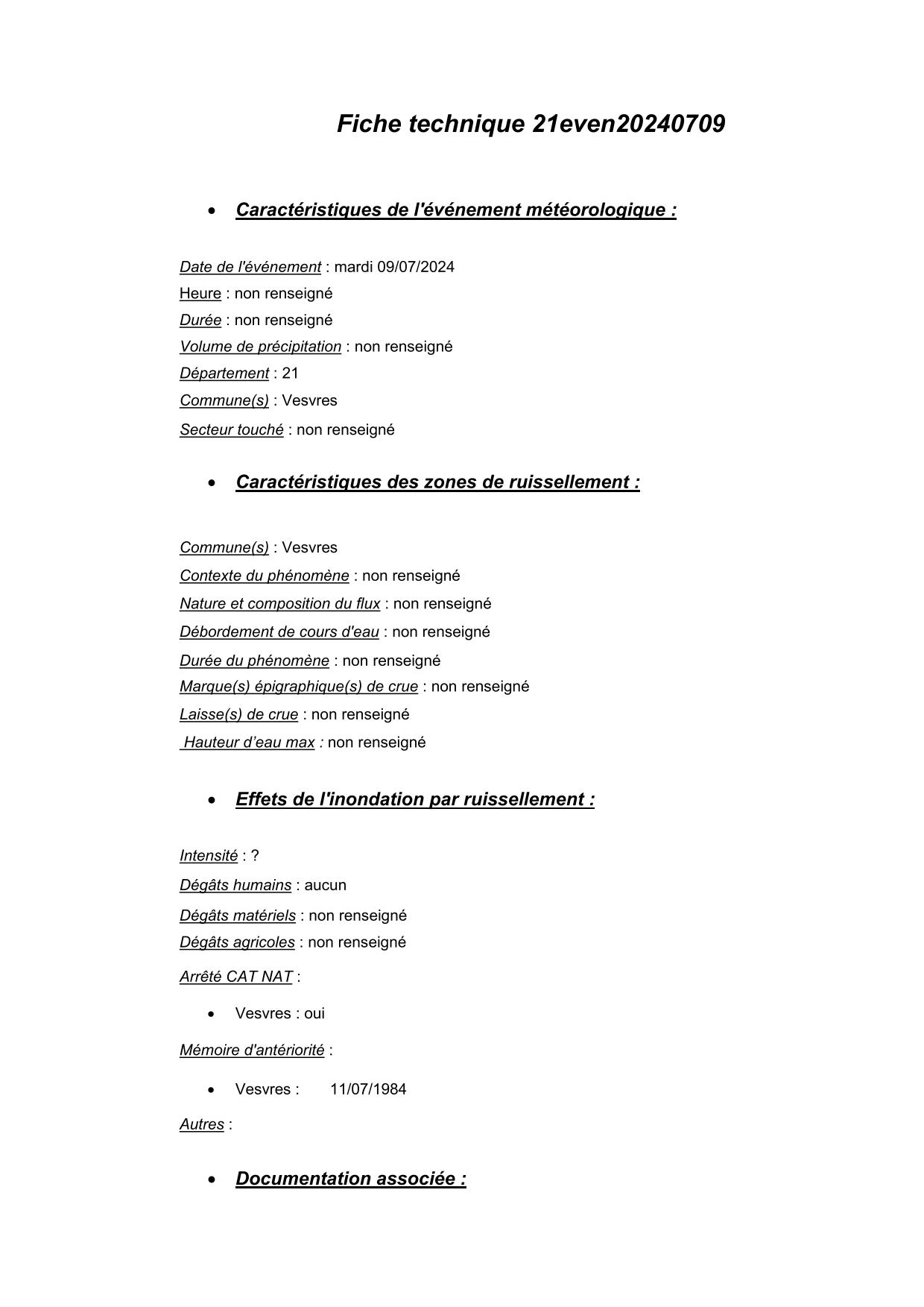 Synthèse de l'évènement de ruissellement du 10/07/2024 en 21