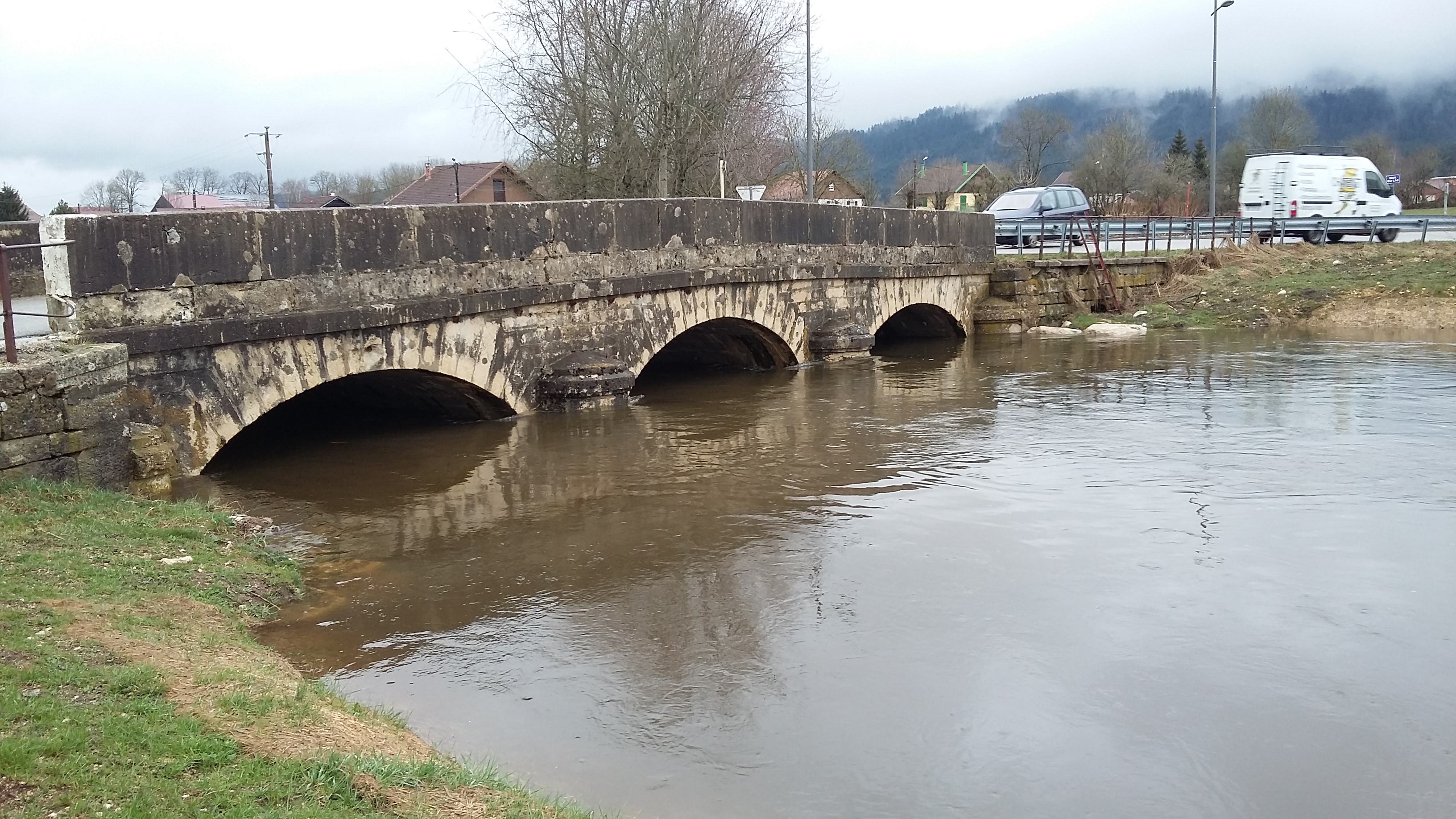 Photo de la crue du Drugeon de mars 2015 à Bouverans 2