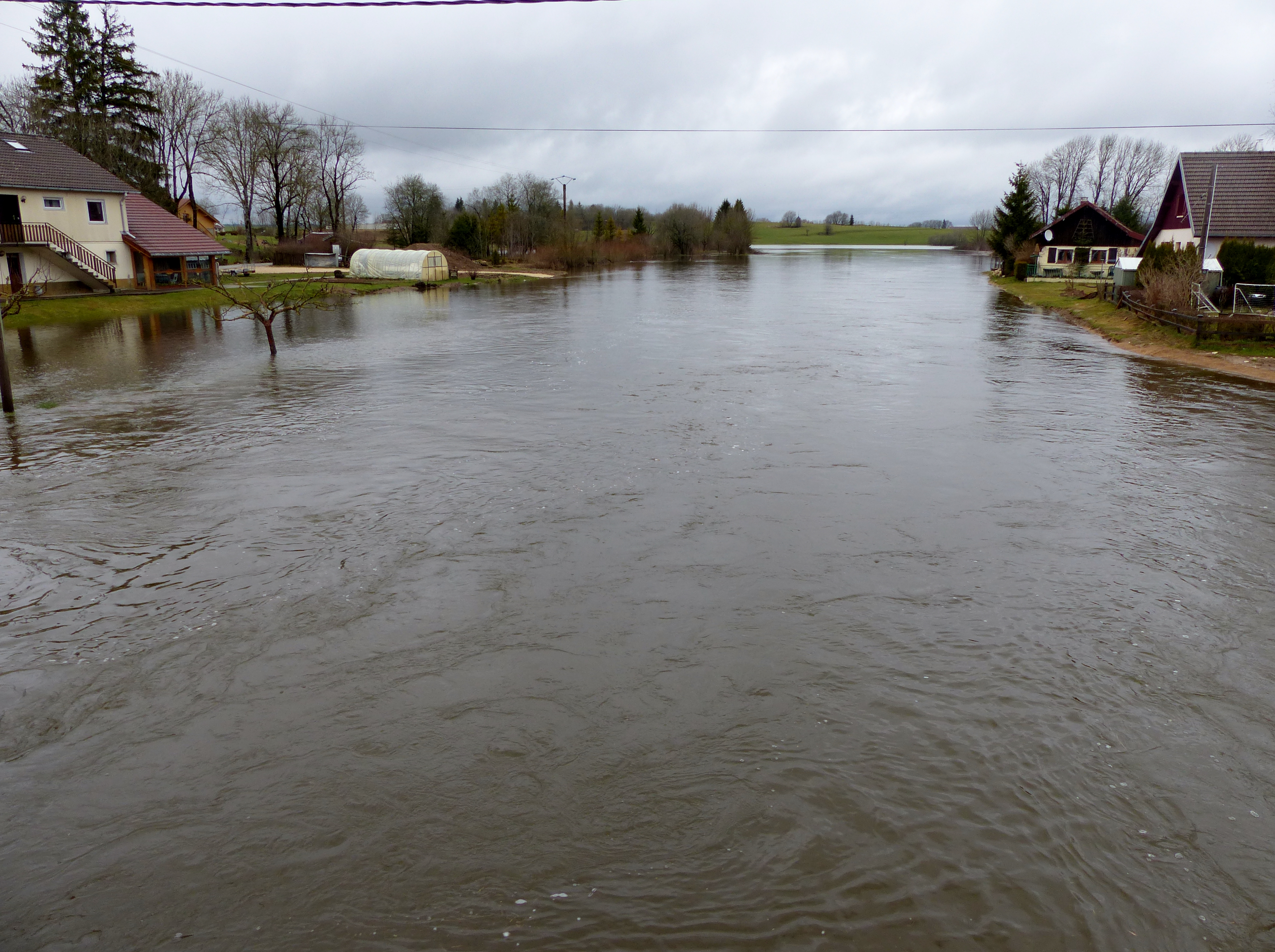 Photo de la crue du Drugeon de mars 2015 à Bonnevaux