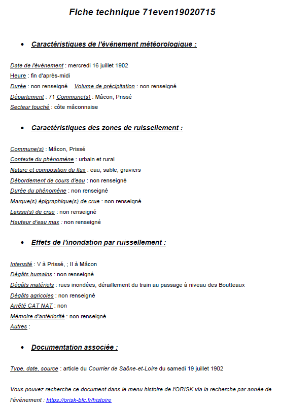 Etude historique des ruissellements