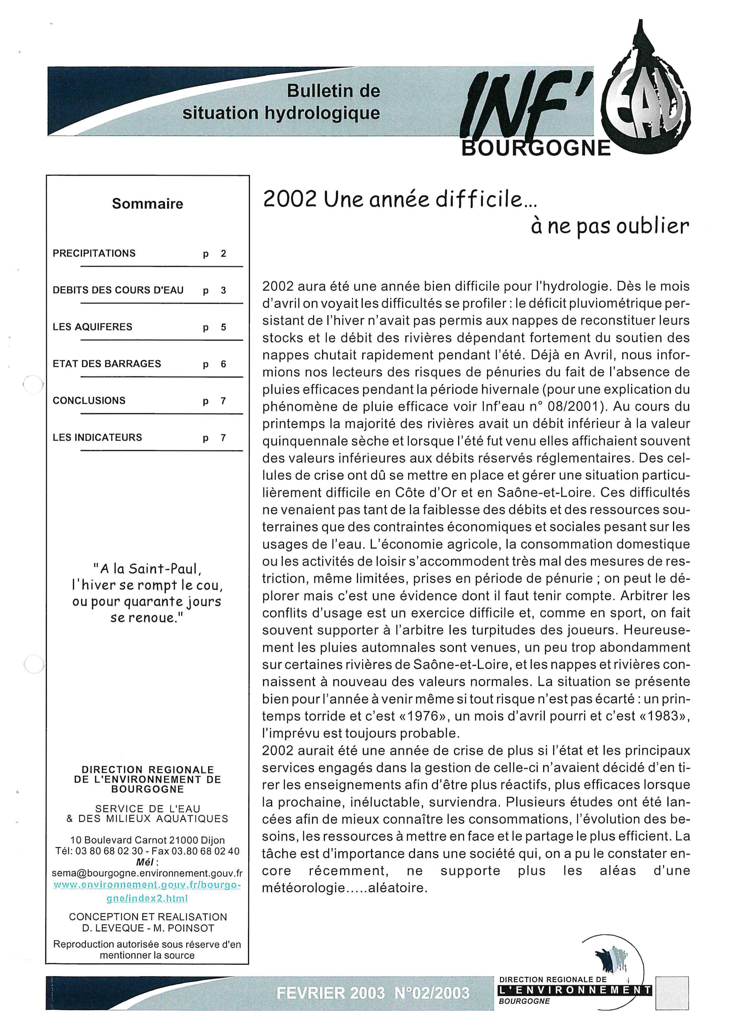Bulletin hydrologique février 2003