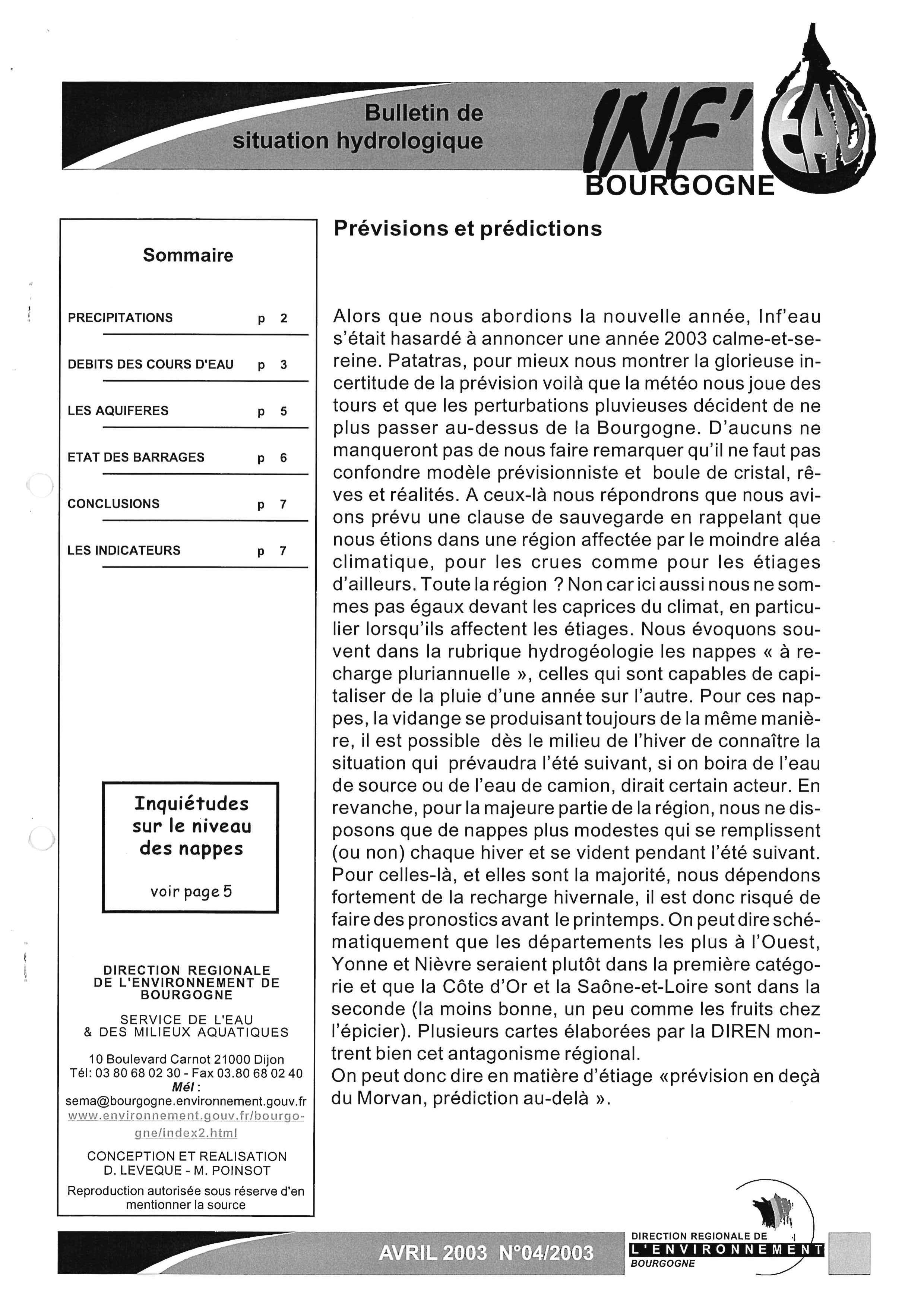 Bulletin hydrologique mars 2003