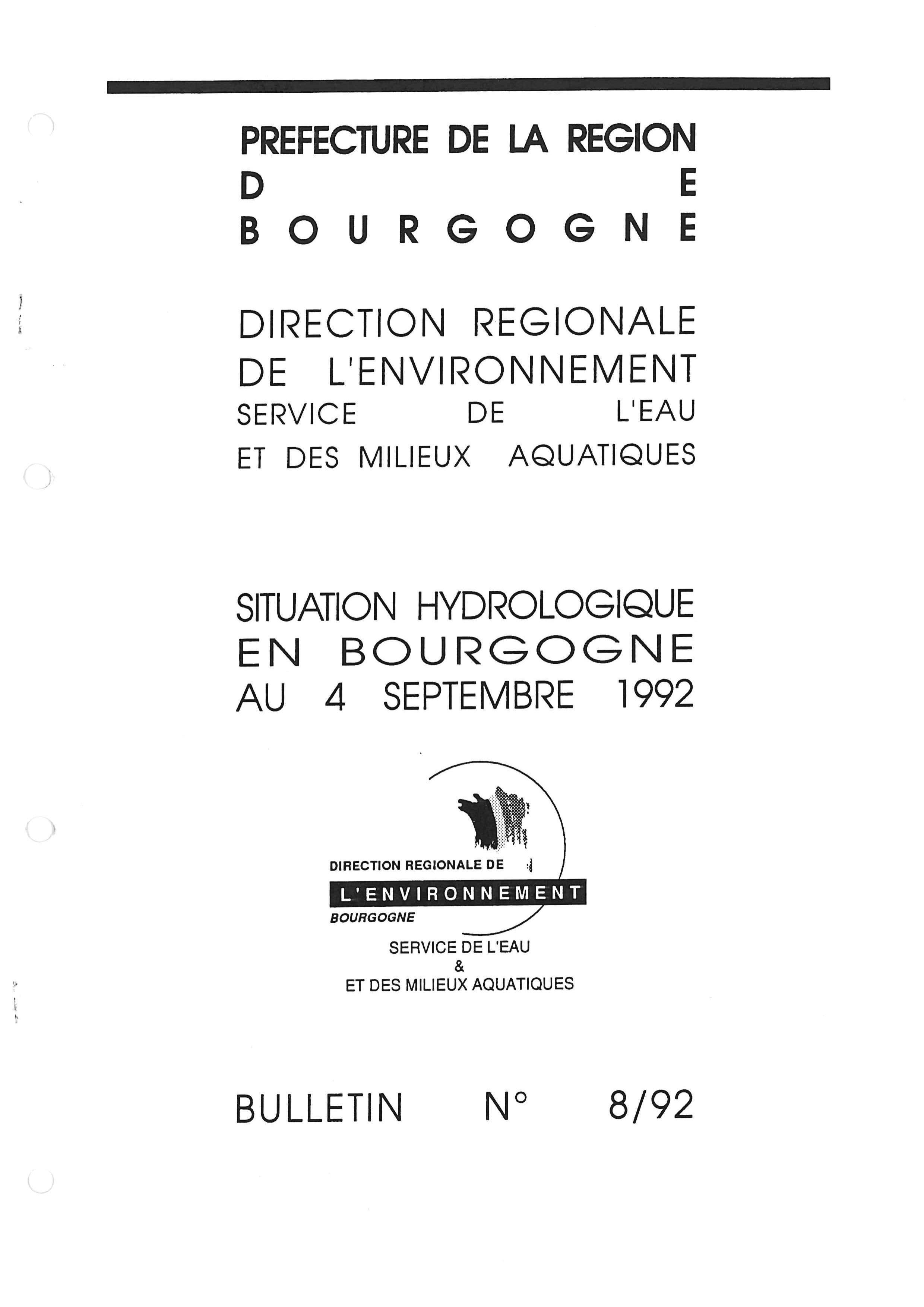 Bulletin hydrologique septembre 1992