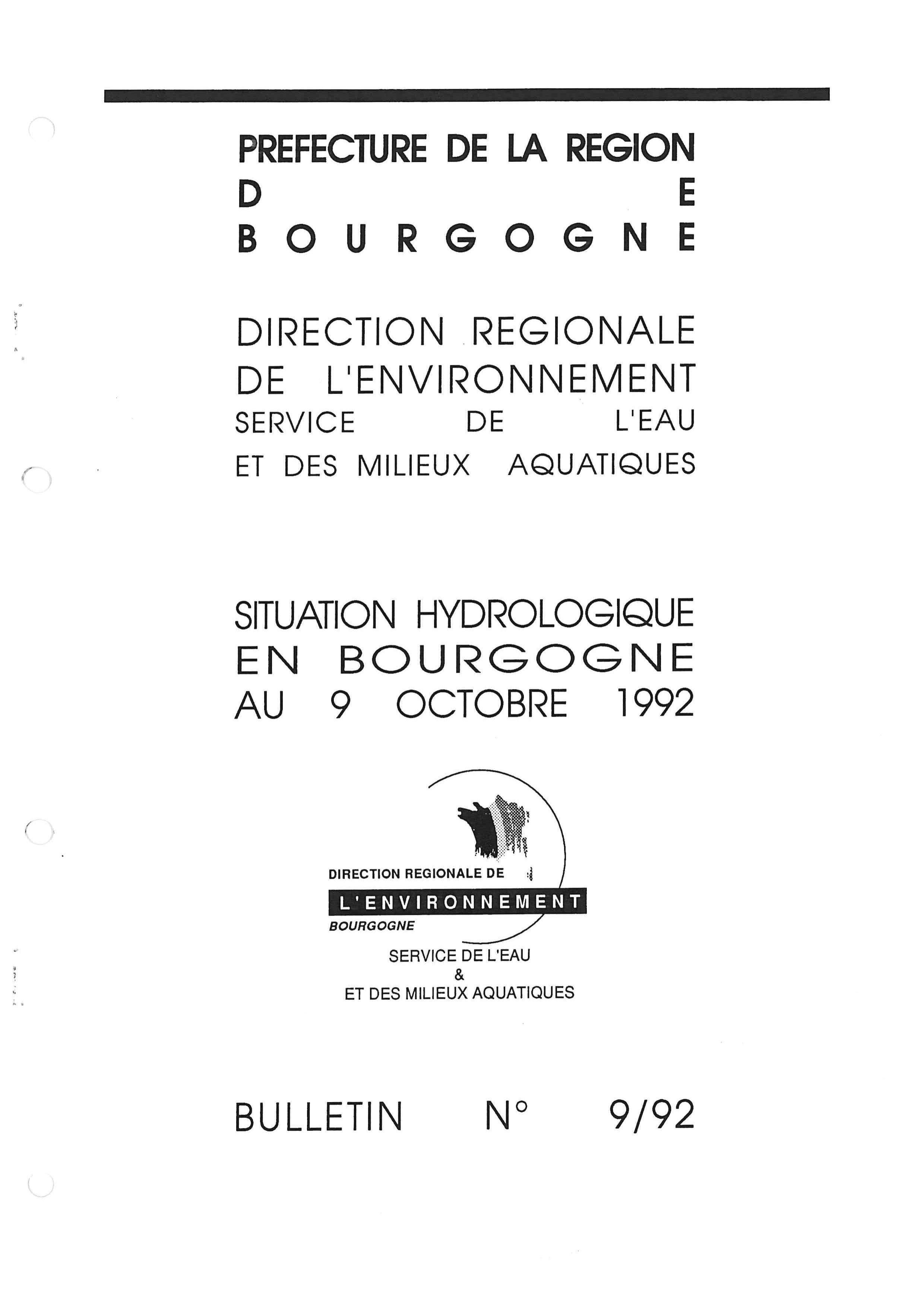 Bulletin hydrologique octobre 1992