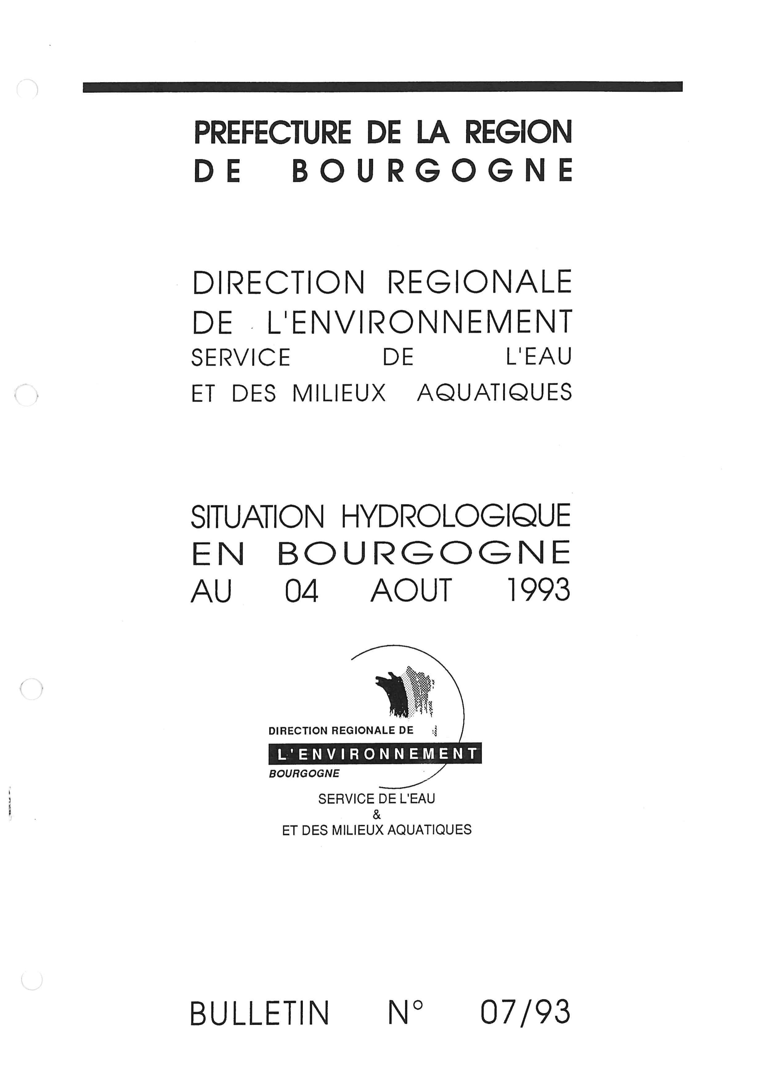 Bulletin hydrologique août 1993