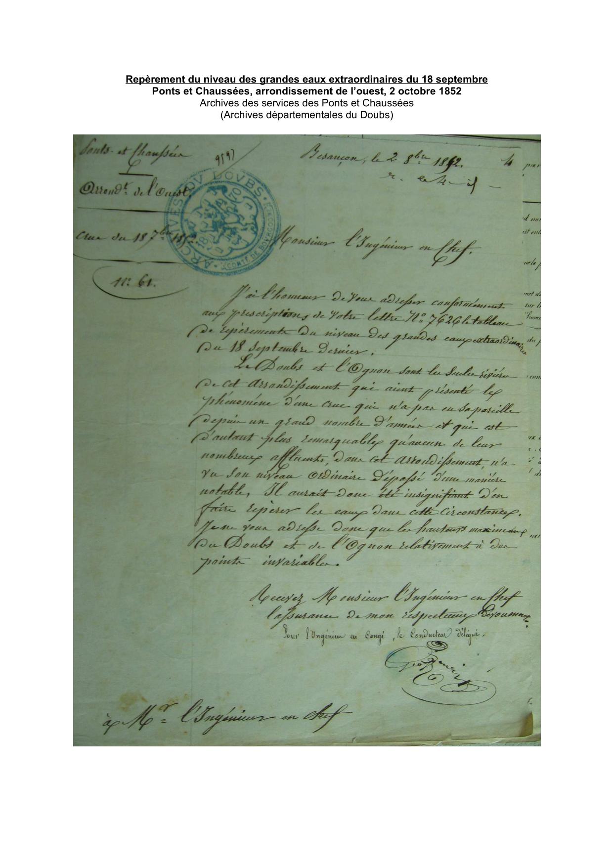 Hautes eaux 1852