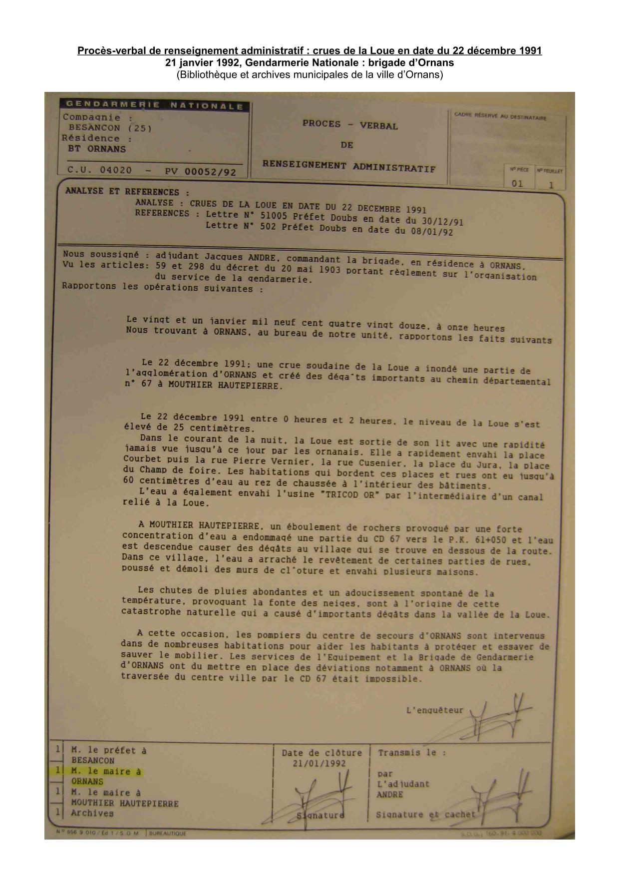 PV Gendarmerie Ornans 1991