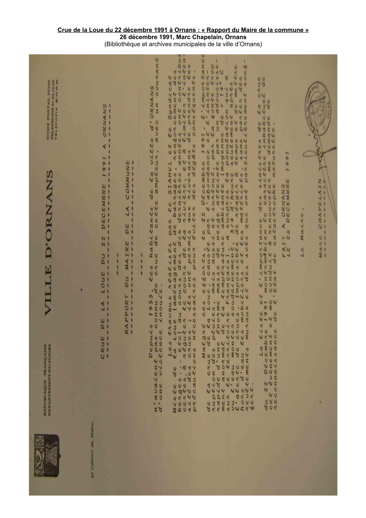 Rapport Maire Ornans 1991
