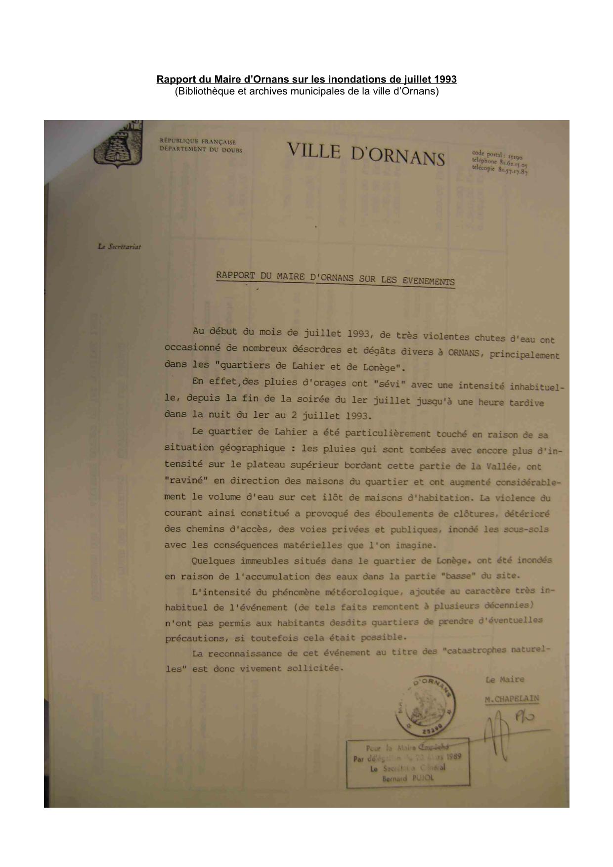 Rapport Maire 1993 Ornans