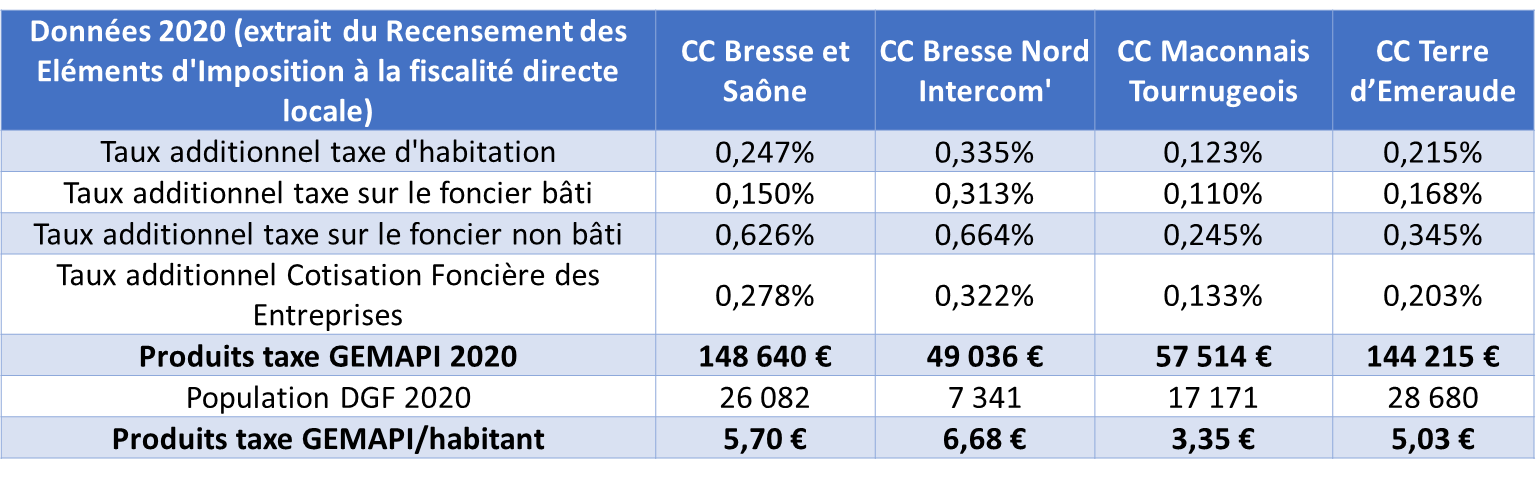 Toutefois certains EPCI souhaitent réserver la mise en place de cette taxe pour financer uniquement les nouvelles dépenses (liées à la PI notamment) alors que d’autres (notamment les EPCI qui n’exerçaient pas la compétence GEMAPI avant la création du syndicat et n’avait donc pas de dépenses précédemment) en profiteront pour financer une part plus importante de leur cotisation afin d’alléger la section de fonctionnement de leur budget général.