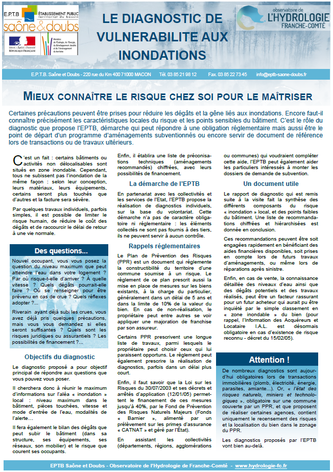 - Plaquette EPTB Saône-et-Doubs : Le diagnostic de vulnérabilité aux inondations