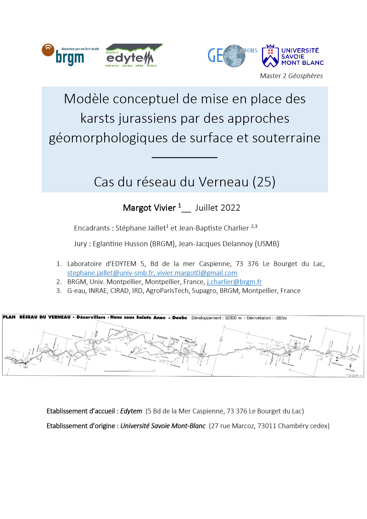 Modèle conceptuel de mise en place des karsts jurassiens par des approches géomorphologiques de surface et souterraine. Cas du réseau du Verneau (25)